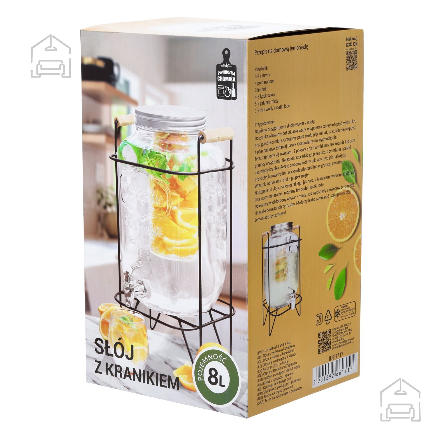 Ne glede na to, ali pripravljate osvežilno limonado za vroč poletni dan ali sadno pijačo za praznično priložnost, bo ta 8‑litrski kozarec Chomik zanesljiv partner pri vsaki postrežbi. Kombinacija kakovostnega stekla, kovinskega pokrova in praktične pipice zagotavlja udobje, higieno in estetsko dovršenost, ki jo bodo gostje zagotovo opazili in cenili. Izdelek je odlična izbira za vse, ki cenijo preprostost, funkcionalnost in lep dizajn v enem.