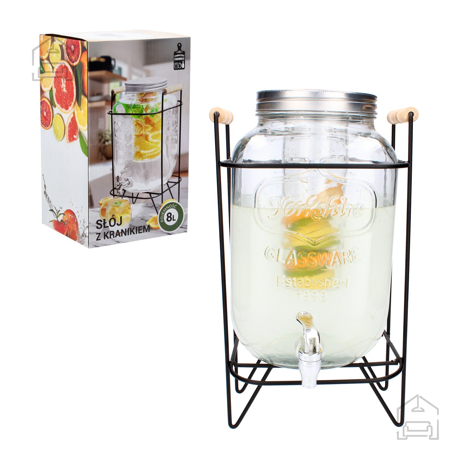 Velik, trpežen in estetsko dovršen kozarec z volumnom 8Litrov blagovne znamke Chomik je idealna izbira za vse, ki radi postrežete osvežilne pijače na vrtnih zabavah, piknikih, družinskih srečanjih ali praznovanjih na prostem. Izdelan je iz kakovostnega prozornega stekla, ki omogoča jasno vidnost vsebine, medtem ko kovinski pokrov poskrbi za varno zapiranje in učinkovito zaščito pijače pred insekti, prahom in drugimi zunanjimi vplivi. Vgrajena pipica omogoča udobno točenje brez razlivanja, dodatna posoda na vrhu pa je namenjena sadju, ledu ali dekorativnim dodatkom, ki napitek vizualno in okusno obogatijo.