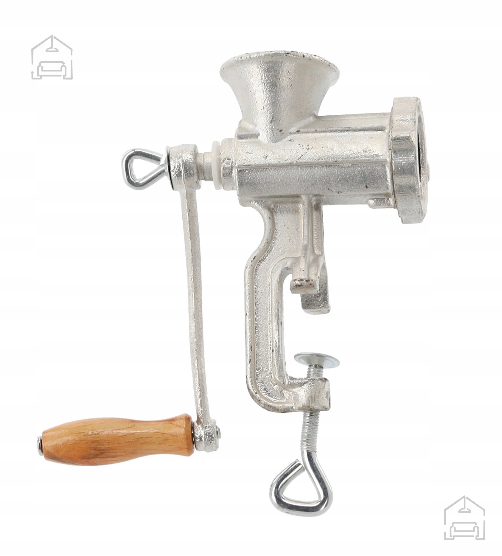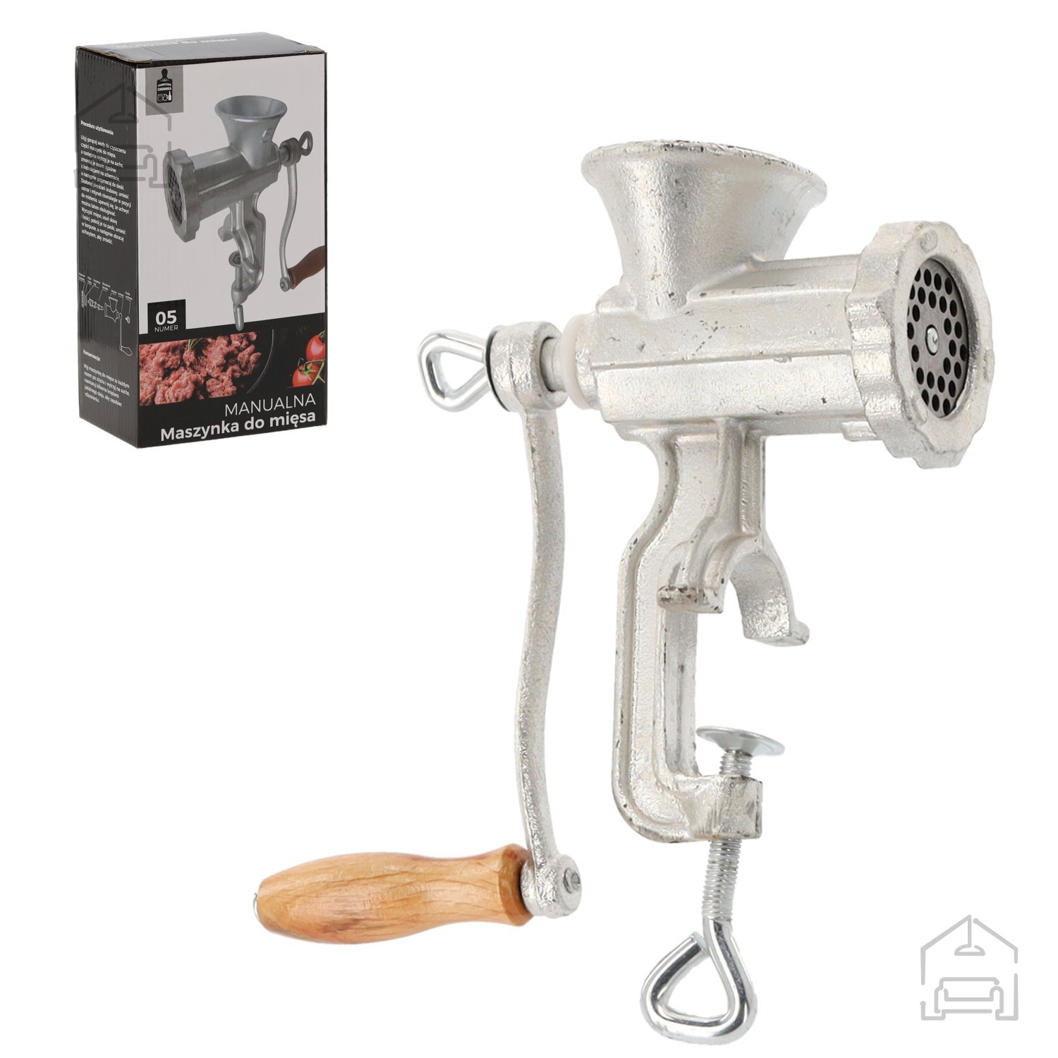 Ročni mlinček za meso Chomik št. 5 je klasična, a izjemno trpežna kuhinjska naprava, ki s svojo robustno zasnovo iz litega železa in kakovostnimi jeklenimi rezili zagotavlja dolgo življenjsko dobo in enakomerno mletje. Izdelek je zasnovan za vse, ki cenijo tradicionalno pripravo hrane in želijo ohraniti popoln nadzor nad teksturo mletega mesa. Njegova srebrna kovinska površina je odporna proti koroziji, ročni pogon pa omogoča uporabo kjerkoli – brez potrebe po elektriki. S kompaktno velikostjo in težo 1,5 kg se mlinček zlahka pritrdi na mizo ali pult s pomočjo močnega vijaka, kar omogoča stabilno in varno delo tudi pri večjih količinah mesa.