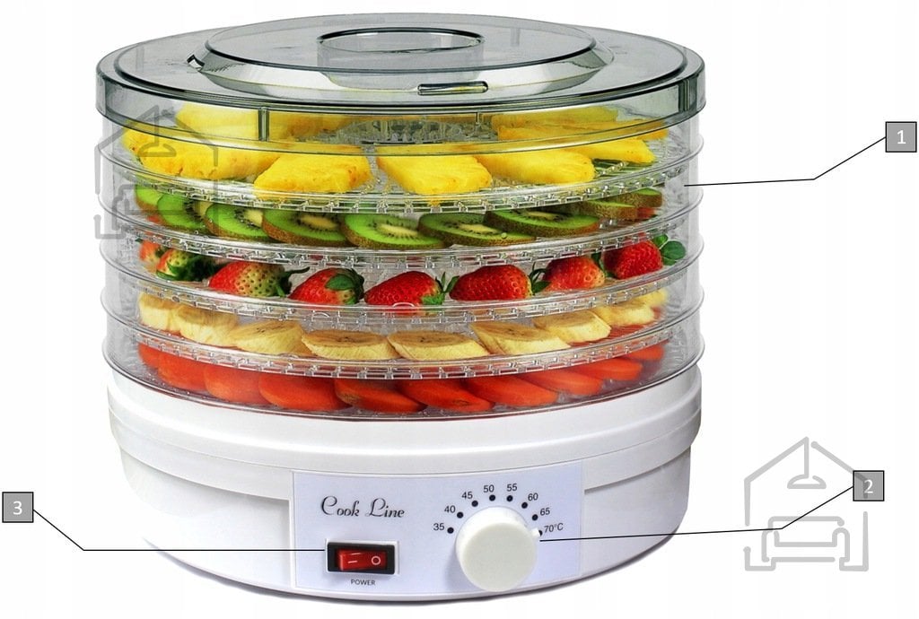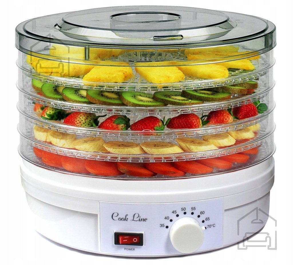 Chomikov sušilnik za živila 5-nivojski *7885 je zasnovan tako, da omogoča intuitivno uporabo brez zapletenih nastavitev. Enostaven nadzor nad sušenjem vam omogoča, da hitro prilagodite delovanje glede na vrsto živila in željeno stopnjo suhosti. Bela, stabilna osnova zagotavlja varno delovanje naprave, medtem ko prozorni pladnji omogočajo vizualni nadzor – brez potrebe po odpiranju naprave in s tem izgubi toplote. Materiali so odporni na vročino in enostavni za čiščenje, kar pripomore k dolgi življenjski dobi izdelka.