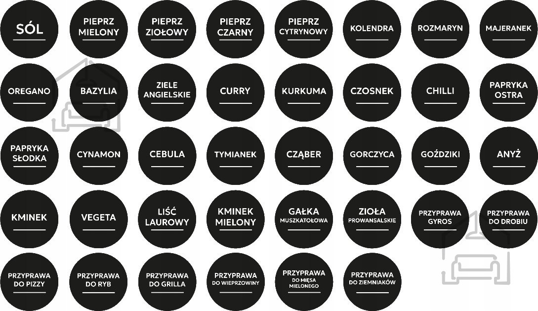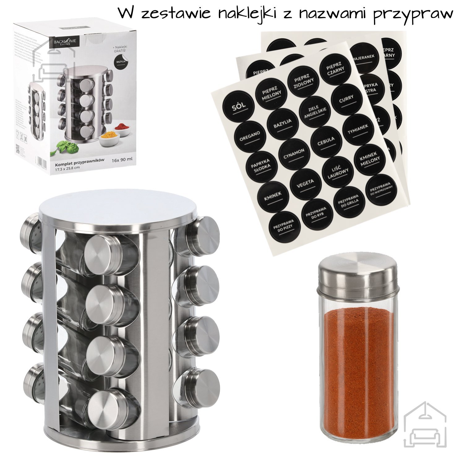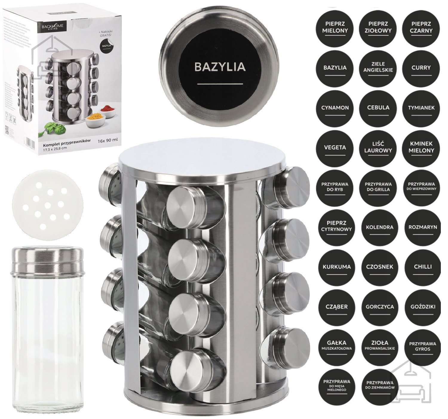 Da bi bila uporaba še bolj intuitivna, paket vključuje 38 samolepilnih nalepk z imeni najpogostejših začimb. Nalepke so oblikovane v nevtralnem, elegantnem slogu, ki se lepo poda k srebrnemu zaključku stojala. Med napisi boste našli osnovne začimbe, kot so sol, poper in paprika, pa tudi bolj eksotične, kot so curry, kurkuma ali provansalska zelišča. Tako si lahko vsak kozarček označite po svojih željah in ustvarite popolnoma personaliziran sistem razvrščanja. Nalepke so enostavne za namestitev in odporne na vlago, zato bodo ostale berljive tudi po daljši uporabi v kuhinji.