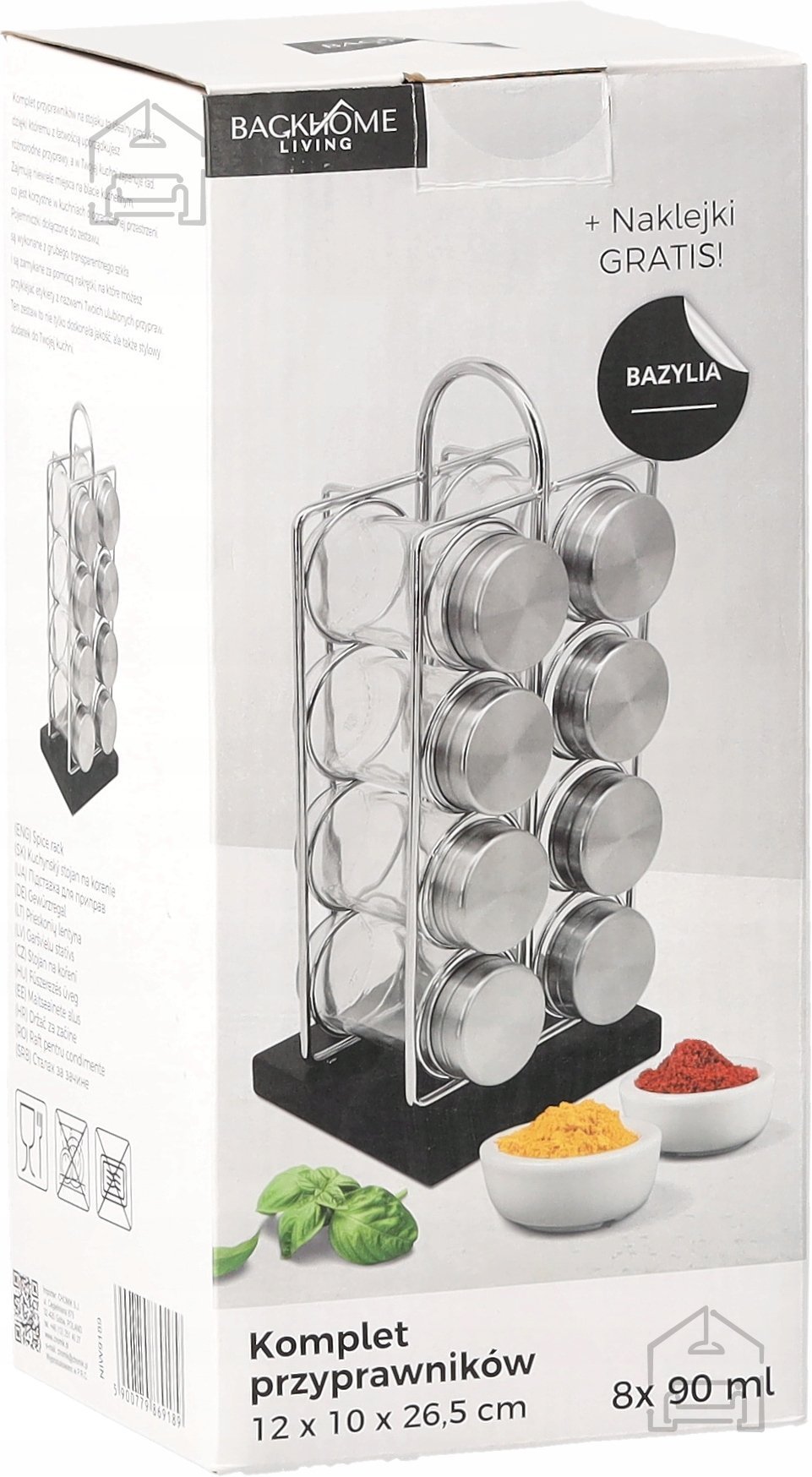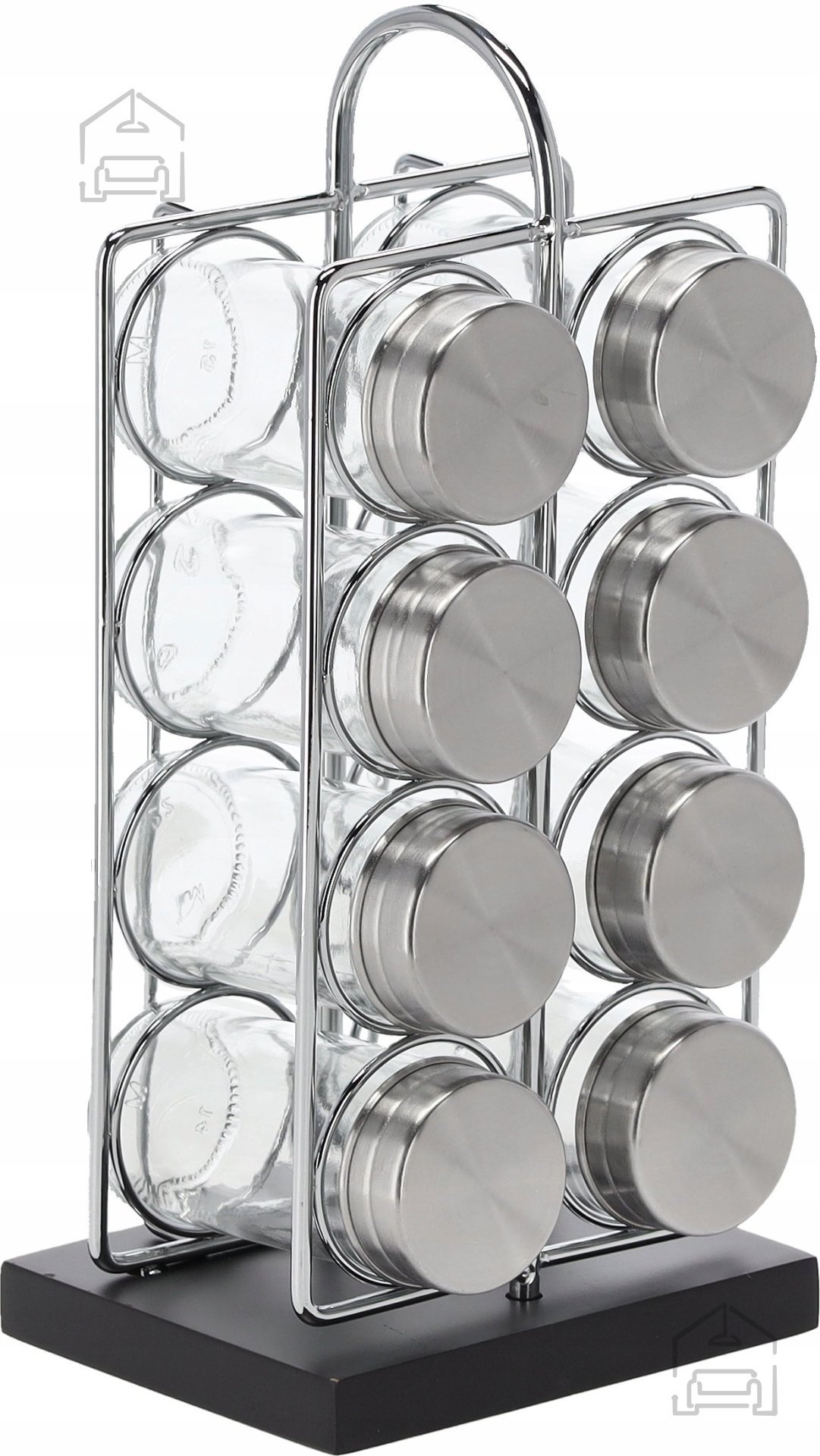 Pripravnik pravokoten z merami 12 x 10 x 26,5 cm s praktičnim ročajem, zasnovan za udobno shranjevanje začimb in enostaven dostop do njih.