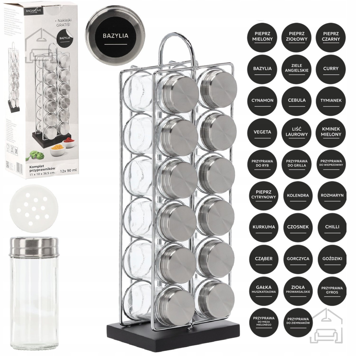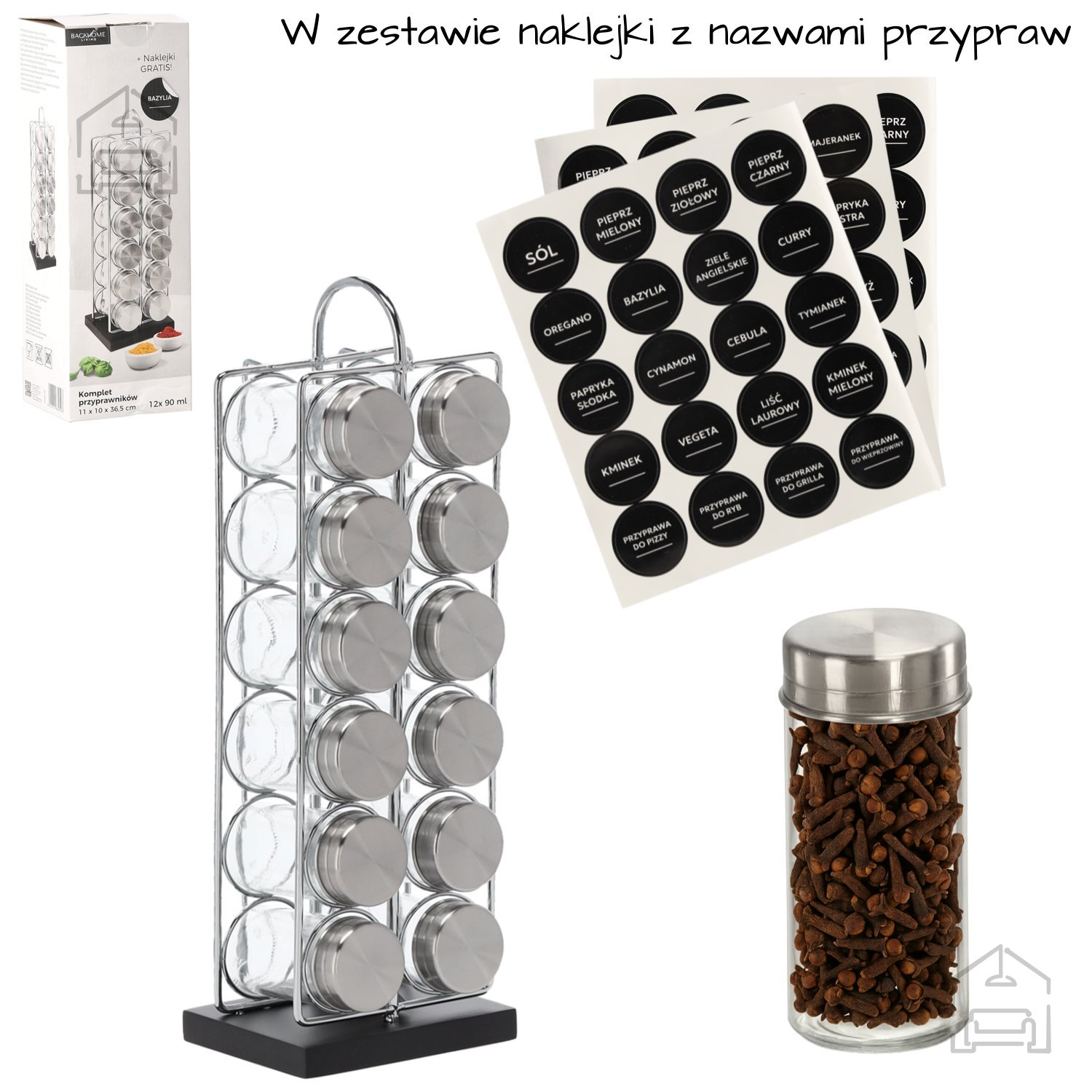 Set vsebuje 38 nalepk z imeni začimb, ki jih lahko poljubno namestite na kozarčke in tako omogočite popolno personalizacijo seta: