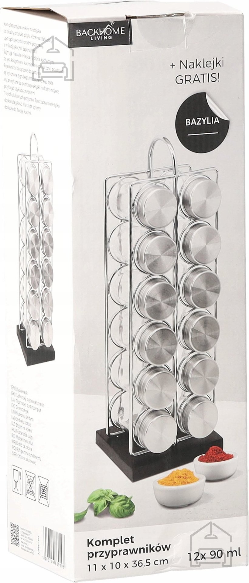 Pripravnik pravokoten z dimenzijami 11 x 10 x 36,5 cm s praktičnim ročajem, zasnovan za udobno shranjevanje začimb in enostaven dostop do njih.