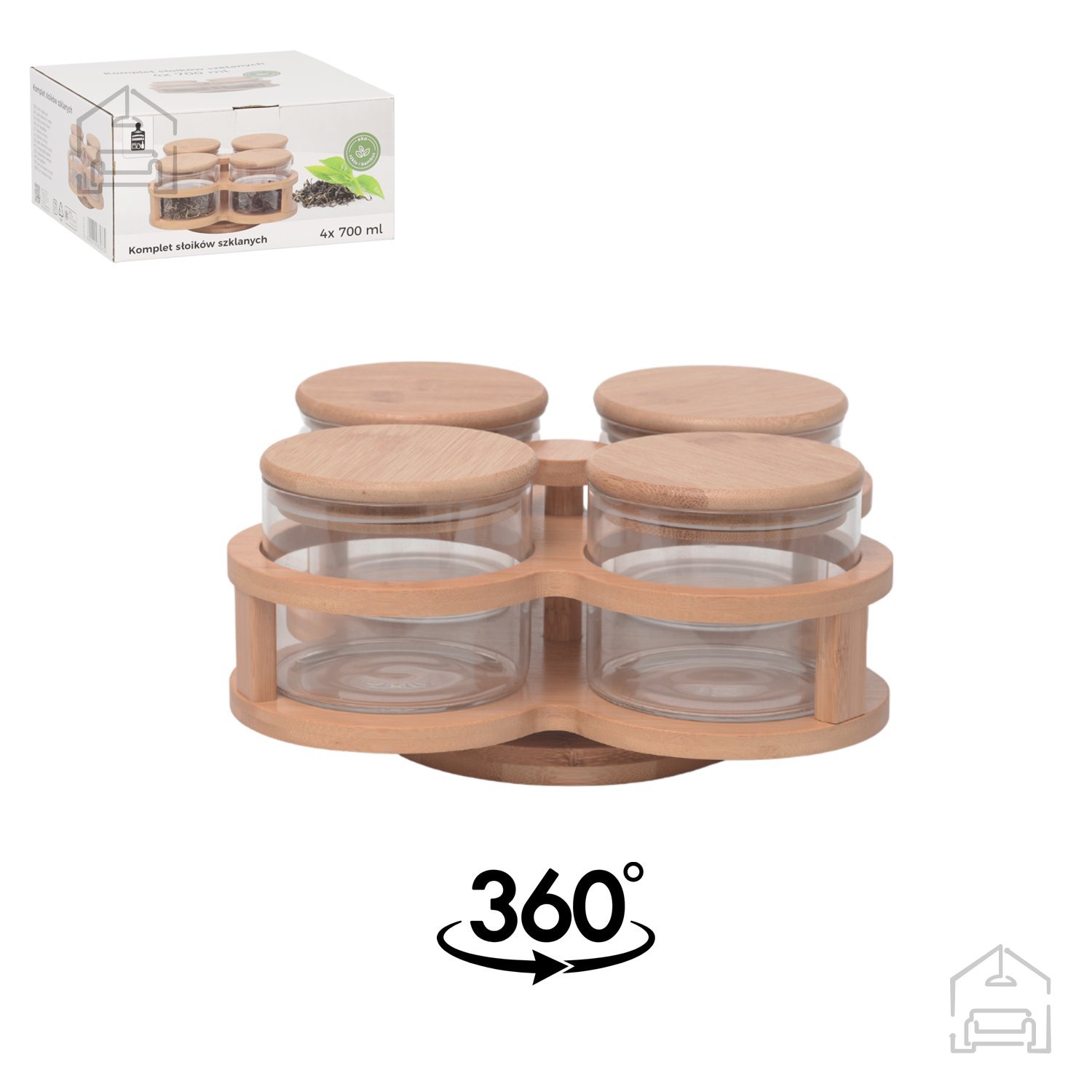 Ta prefinjen komplet združuje toplino naravnega lesa z brezčasno eleganco prozornega stekla, kar ustvarja harmoničen dodatek za vsako kuhinjo ali jedilnico. Vsak kozarec ima prostornino 700 ml, kar omogoča praktično shranjevanje različnih vrst živil, od domačih marmelad, medu, žitaric, suhega sadja in oreščkov, do aromatičnih začimb. Leseni pokrovi se popolnoma prilegajo otvorini, kar pomaga ohranjati svežino in aromo vsebine, hkrati pa ščitijo pred prahom in vlago. Lesena podlaga, na katero so kozarci postavljeni, zagotavlja stabilnost in estetsko urejen videz, ki ga zlahka vključite v sodoben ali rustikalen slog notranje opreme.