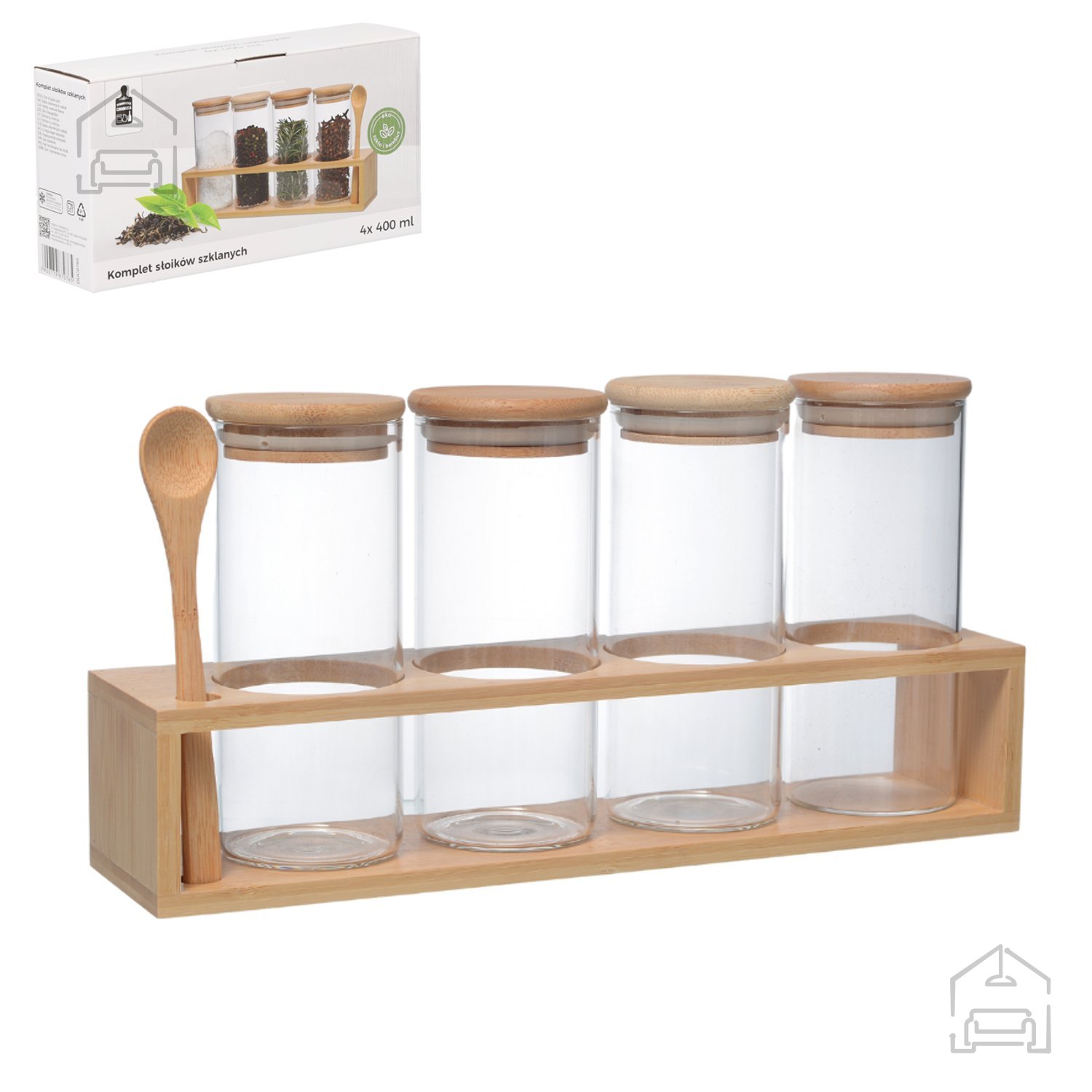 Vsak kozarec s prostornino 400 ml je popolne velikosti za vsakodnevno uporabo. Pokrovi iz masivnega lesa se tesno prilegajo, kar pomaga pri ohranjanju svežine vsebine in zaščiti pred zunanjimi vplivi. Komplet je idealen za organizirano shranjevanje različnih živil ali dodatkov na kuhinjskem pultu, v shrambi ali na jedilni mizi. Zaradi preglednega stekla hitro prepoznate vsebino, kar poenostavi pripravo obrokov in hkrati ohranja urejen videz prostora.