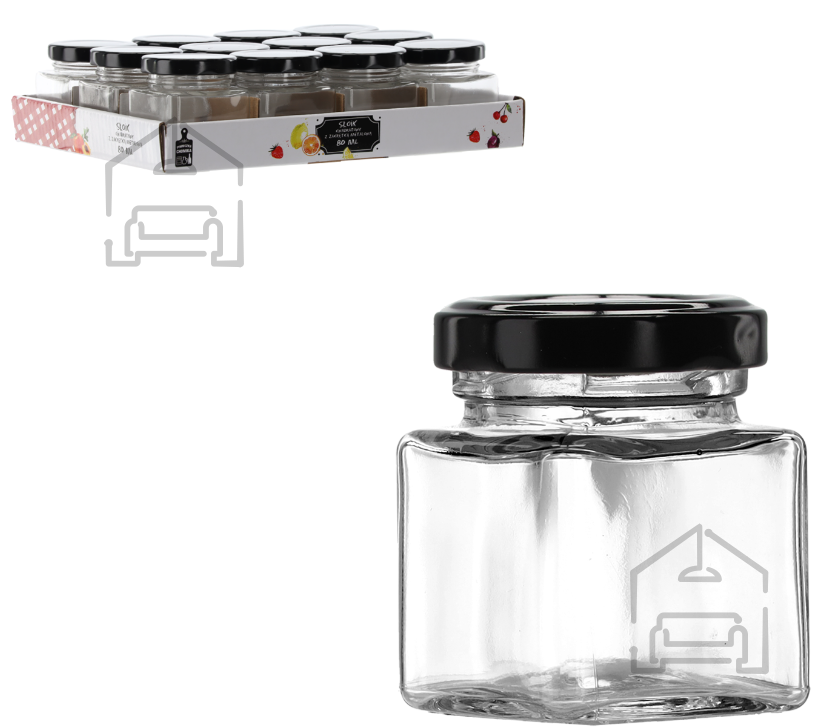 Kozarec kvadratne oblike s prostornino 80 ml s črnim kovinskim pokrovčkom je elegantna možnost za shranjevanje medu, marmelad, začimb in drugih drobnih izdelkov. Njegova kompaktna oblika in tesnilni pokrovček zagotavljata svežino shranjenih izdelkov. Izdelek je pakiran v displayu po 12 kosov, kar olajša predstavitev in maloprodajo.