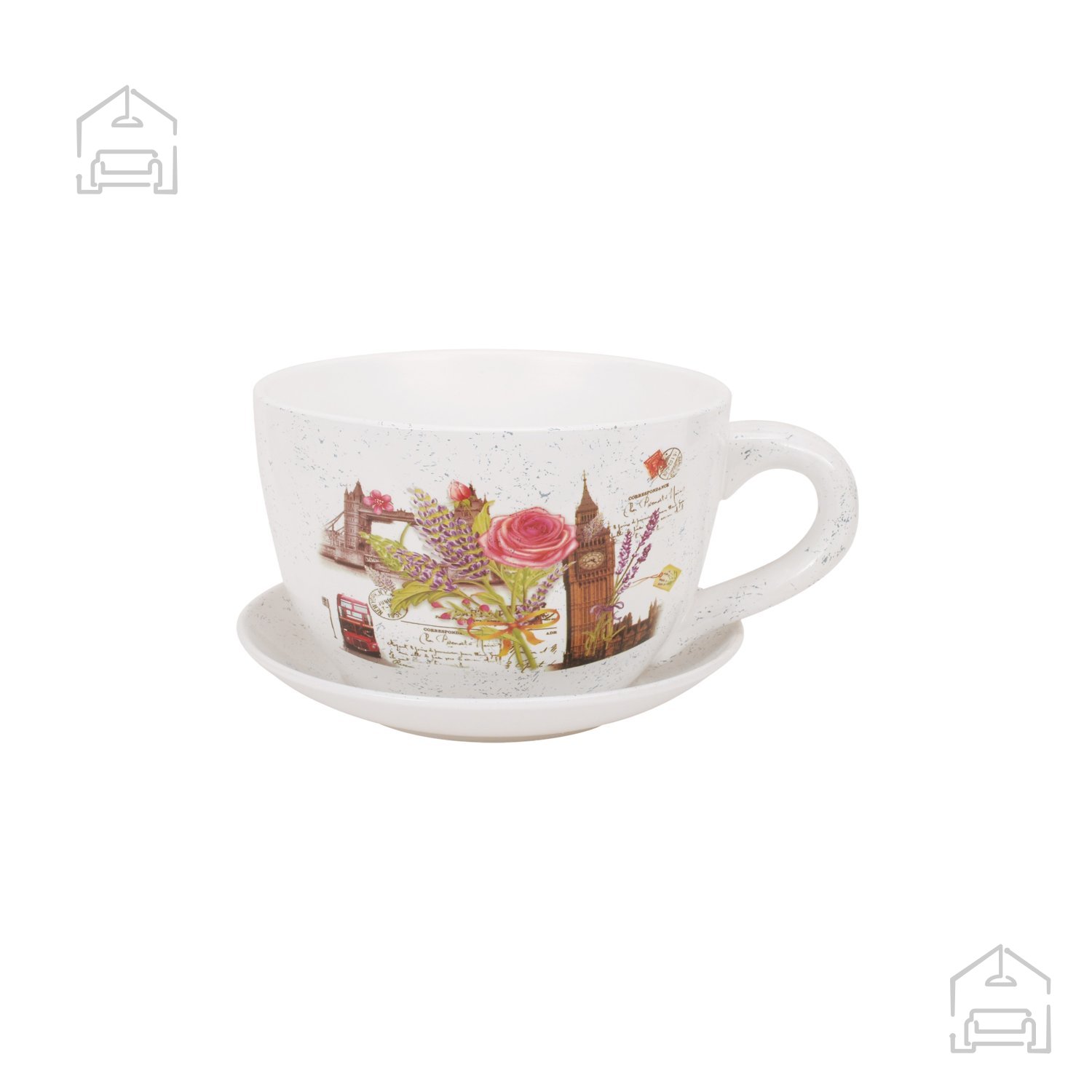 Lonec meri 29x25x16 cm, kar ga uvršča med srednje velike dekorativne lonce. Njegova zasnova v obliki skodelice pritegne pozornost in dodaja igriv značaj prostoru. Zaradi uravnoteženih proporcev je primeren za postavitev na okenske police, mize, terase ali vrtne police. Obenem nudi dovolj prostora za manjše rastline, zelišča ali dekorativne aranžmaje.