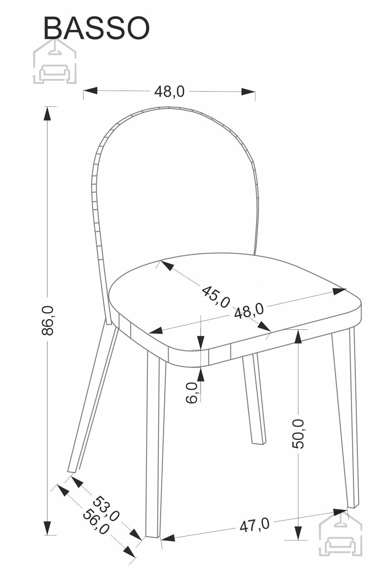 Stol Basso meri 48x56x86 cm, kar pomeni, da je primeren za večino standardnih jedilnih miz in omogoča udobno sedenje tudi pri daljših obrokih. Masivne bukove noge v barvi naravnega hrasta nudijo stabilnost, hkrati pa prostor napolnijo z občutkom topline. Okvir iz iverala zagotavlja dodatno trdnost in dolgo življenjsko dobo, medtem ko je sedež oblečen v mehko, na dotik prijetno tkanino CREMONA v bež odtenku, ki se lepo ujema z različnimi barvnimi kombinacijami prostora.