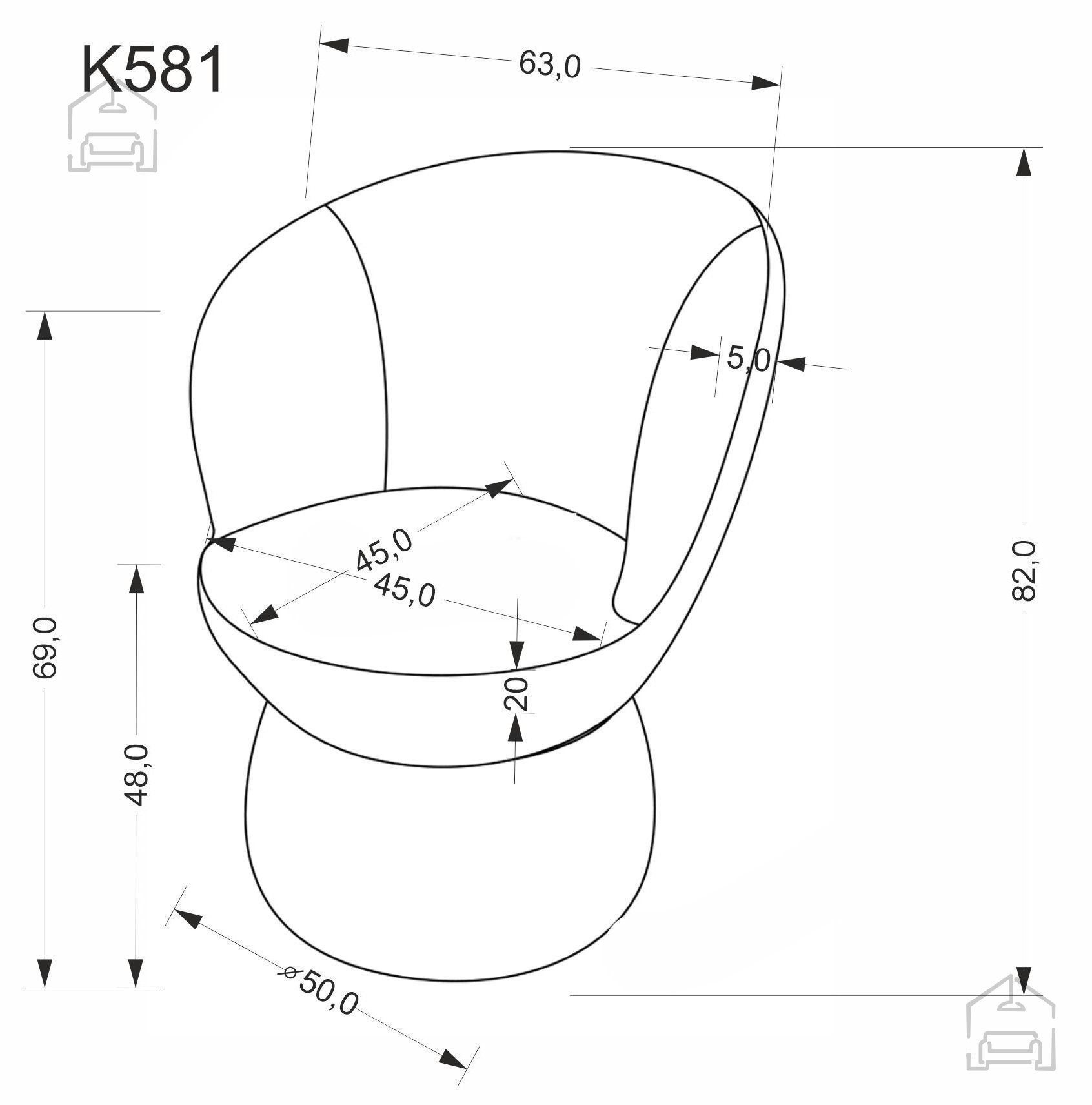 Stol K581 – Halmar s svojo pepelnato sivo barvo v prostor vnese občutek umirjenosti in prefinjenosti. Barvni ton se lepo ujema z naravnimi materiali, kot so les, beton ali steklo, ter omogoča brezčasno kombinacijo z različnimi barvnimi paletami. Zaradi uravnoteženih proporcev in zaobljenih linij stol ne deluje masivno, temveč zračno, kar pripomore k občutku odprtosti in prostornosti v prostoru.