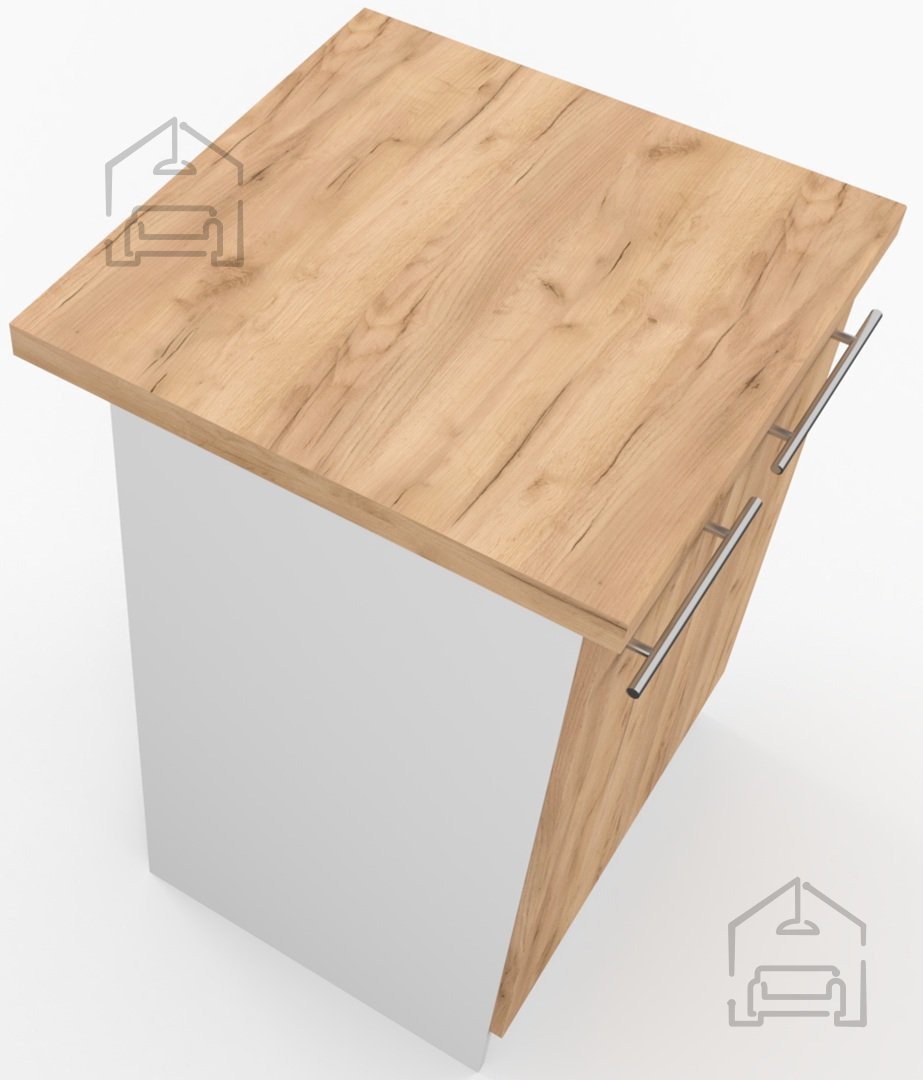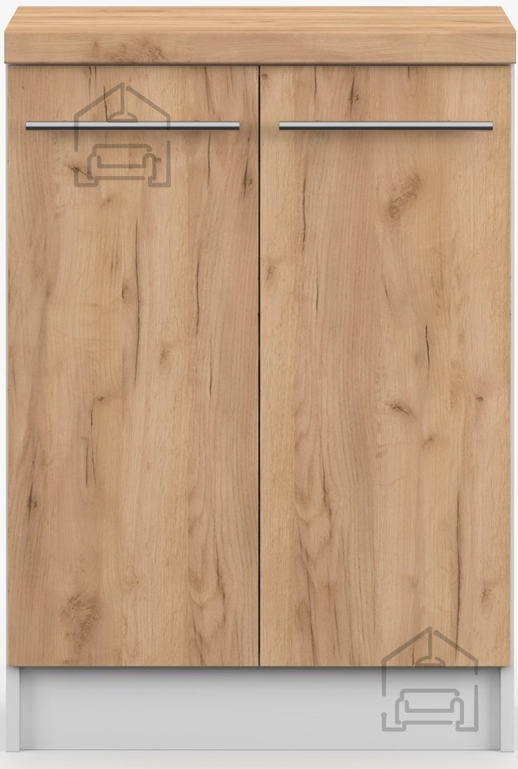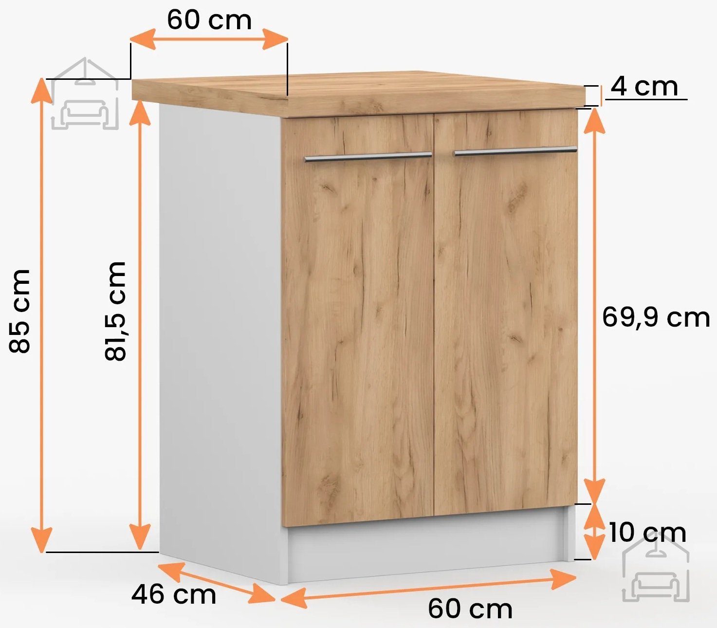 Spodnja omara Inez II – bela/craft zlati je praktičen in estetsko dovršen kos pohištva, ki združuje funkcionalnost in sodoben dizajn. Izdelana je iz kakovostne laminirane plošče, ki zagotavlja trpežnost in enostavno čiščenje, zato je idealna izbira za vsakodnevno uporabo v kuhinji, kopalnici ali drugih prostorih, kjer potrebujete dodatno shranjevalno površino. S svojo širino 60 cm, globino 46 cm in višino 85 cm se lepo prilega tudi manjšim prostorom, hkrati pa ponuja dovolj prostora za shranjevanje različnih predmetov.