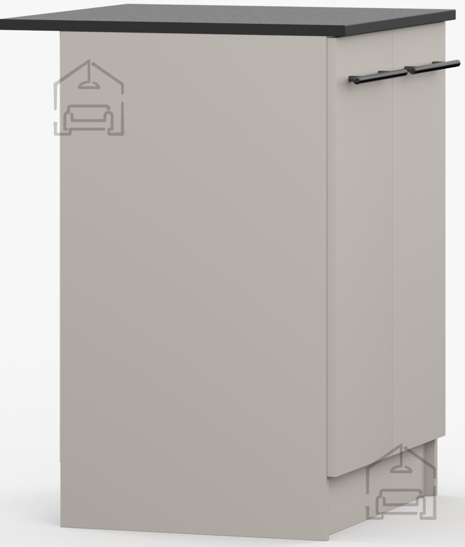 Kašmir ton je izbrana barva, ki ustvarja občutek topline in nežne elegance. V kombinaciji s črnim pultom nastane uravnotežen videz, primeren za sodobne kuhinje, kjer se prepletata funkcionalnost in estetika. Takšna barvna kombinacija omogoča enostavno ujemanje z drugimi kosi pohištva ali dodatki v naravnih, pastelnih ali kontrastnih odtenkih.