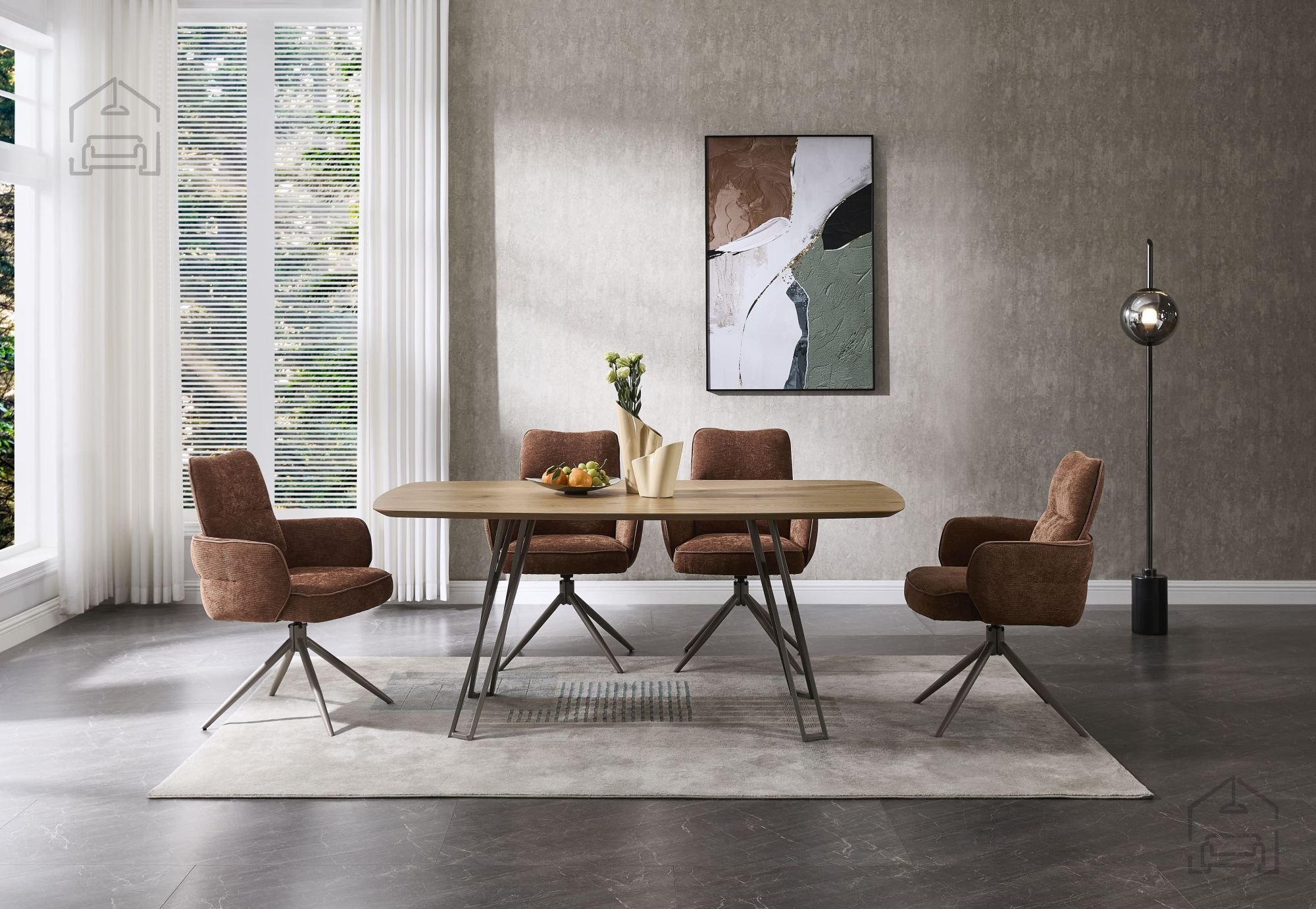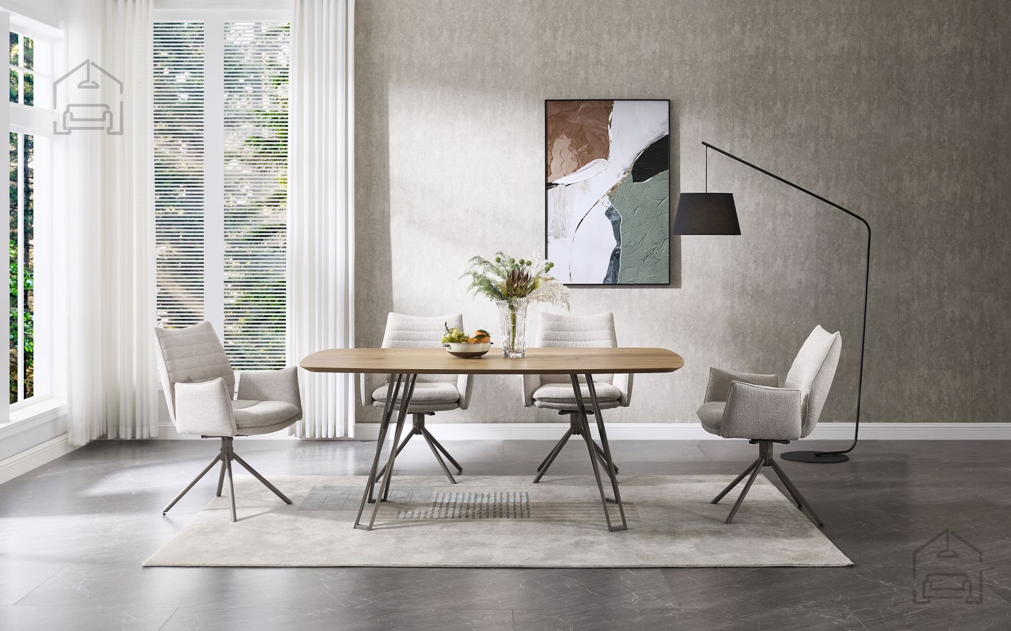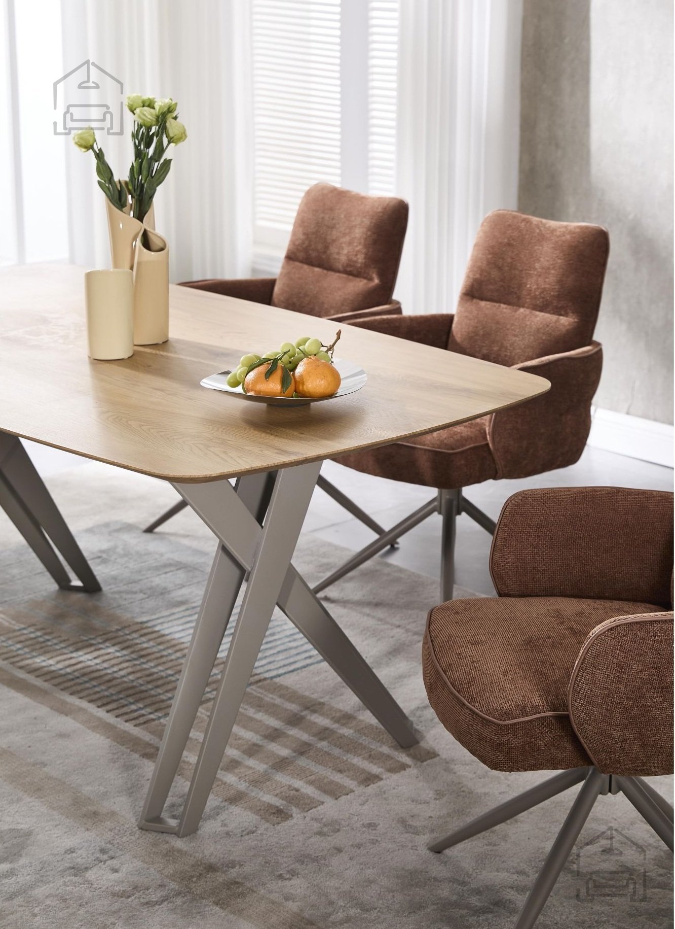 Miza je zasnovana tako, da se prilagodi potrebam sodobnega bivanja. Naravna barva hrasta v prostor vnese toplino in domačnost, kovinsko podnožje pa moderni pridih, ki se lepo ujema z različnimi stili pohištva – od skandinavskega minimalizma do industrijskega dizajna. Zaradi svoje nevtralne barvne kombinacije jo lahko enostavno dopolnite s katerimikoli jedilnimi stoli, dekoracijo ali tekstilom.