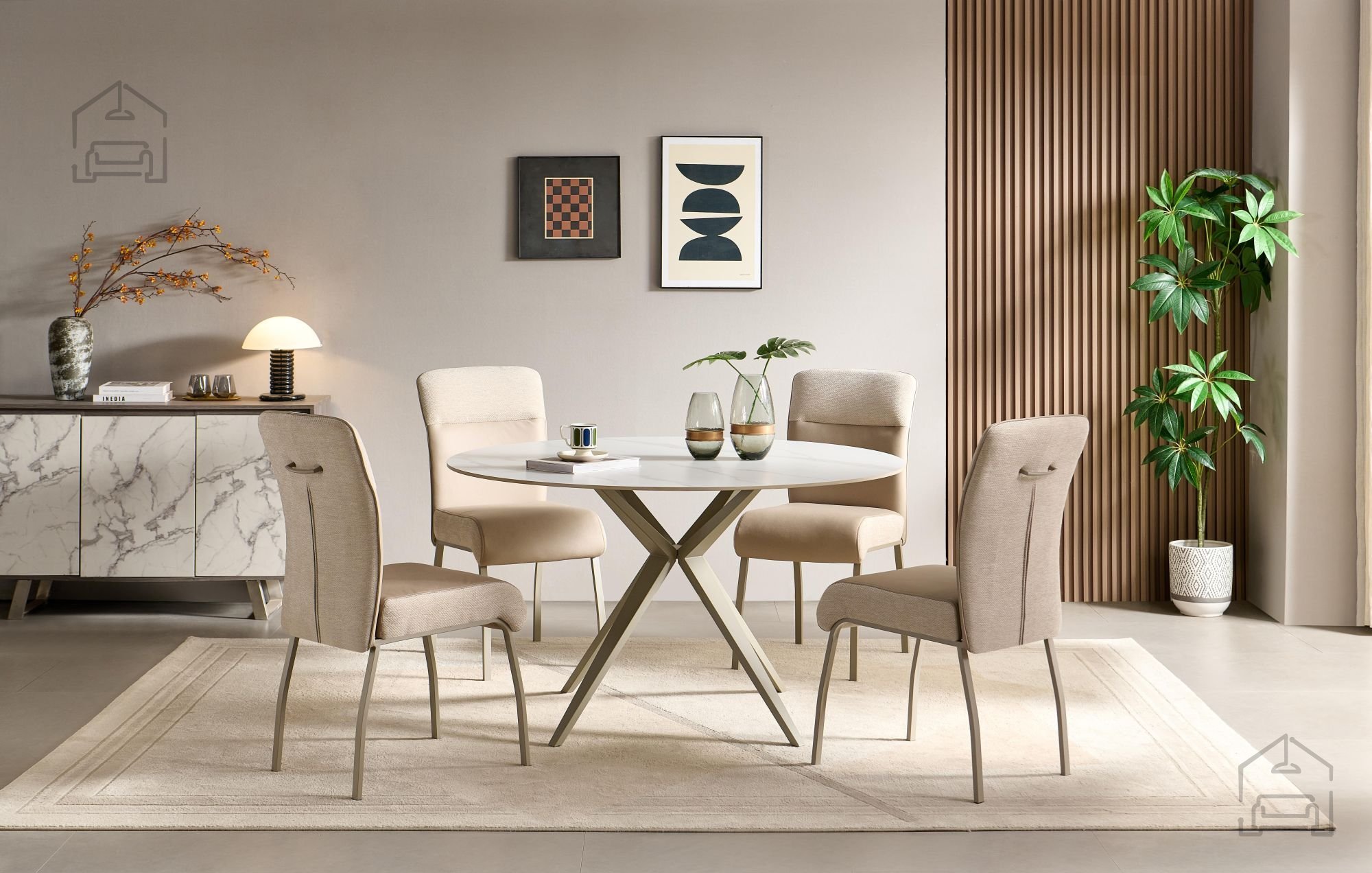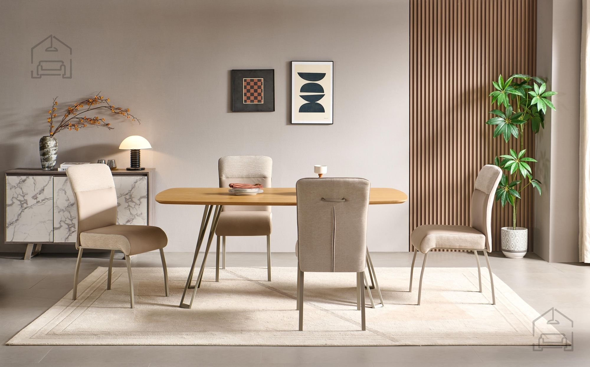 Ena izmed ključnih prednosti tega jedilnega stola je premišljeno oblikovano sedišče, ki s 51 cm višine omogoča ergonomsko sedenje in podporo hrbtu. Mehka tkanina v bež barvi daje prijeten občutek ob dotiku, hkrati pa zagotavlja toplino in domačnost v prostoru. Kovinski okvir poskrbi za stabilnost in varnost, saj stol prenese obremenitev do 120 kg, kar je odlično za vsakodnevno uporabo. Zaradi kakovostnih materialov je stol preprost za vzdrževanje – dovolj je le občasno čiščenje z vlažno krpo, da ohrani svež videz skozi leta.