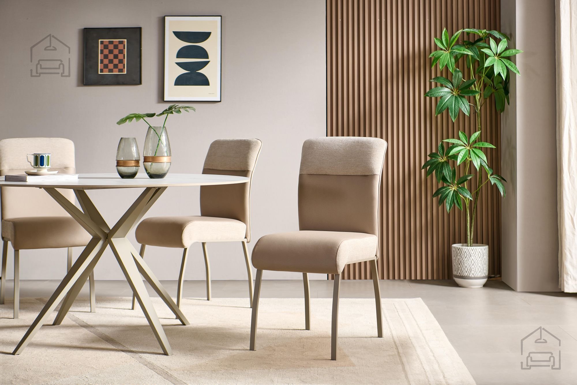 Ustvarite popolno jedilnico, kjer se udobje in eleganca srečata v brezčasni obliki. Ta jedilni stol v bež barvi je zasnovan z mislijo na sodobnega uporabnika, ki od svojega pohištva pričakuje več kot le funkcionalnost. Kombinacija kakovostne tkanine in trpežnega kovinskega ogrodja poskrbi za dolgo življenjsko dobo, medtem ko nevtralna barva omogoča enostavno kombiniranje z različnimi stili notranje opreme – od klasičnega do modernega videza. S svojim čistim dizajnom in prefinjeno silhueto bo stol postal nepogrešljiv kos pohištva v vašem domu.