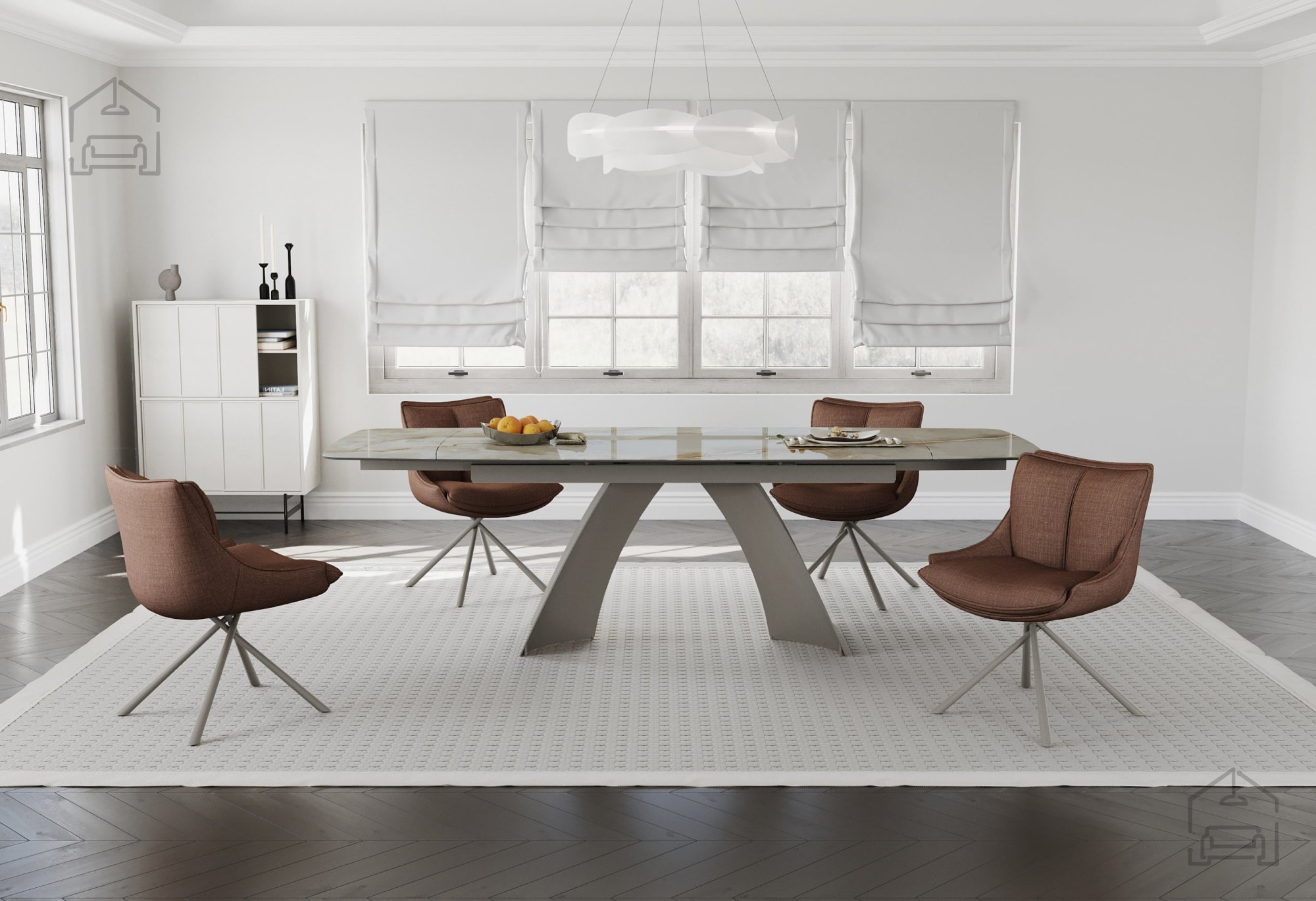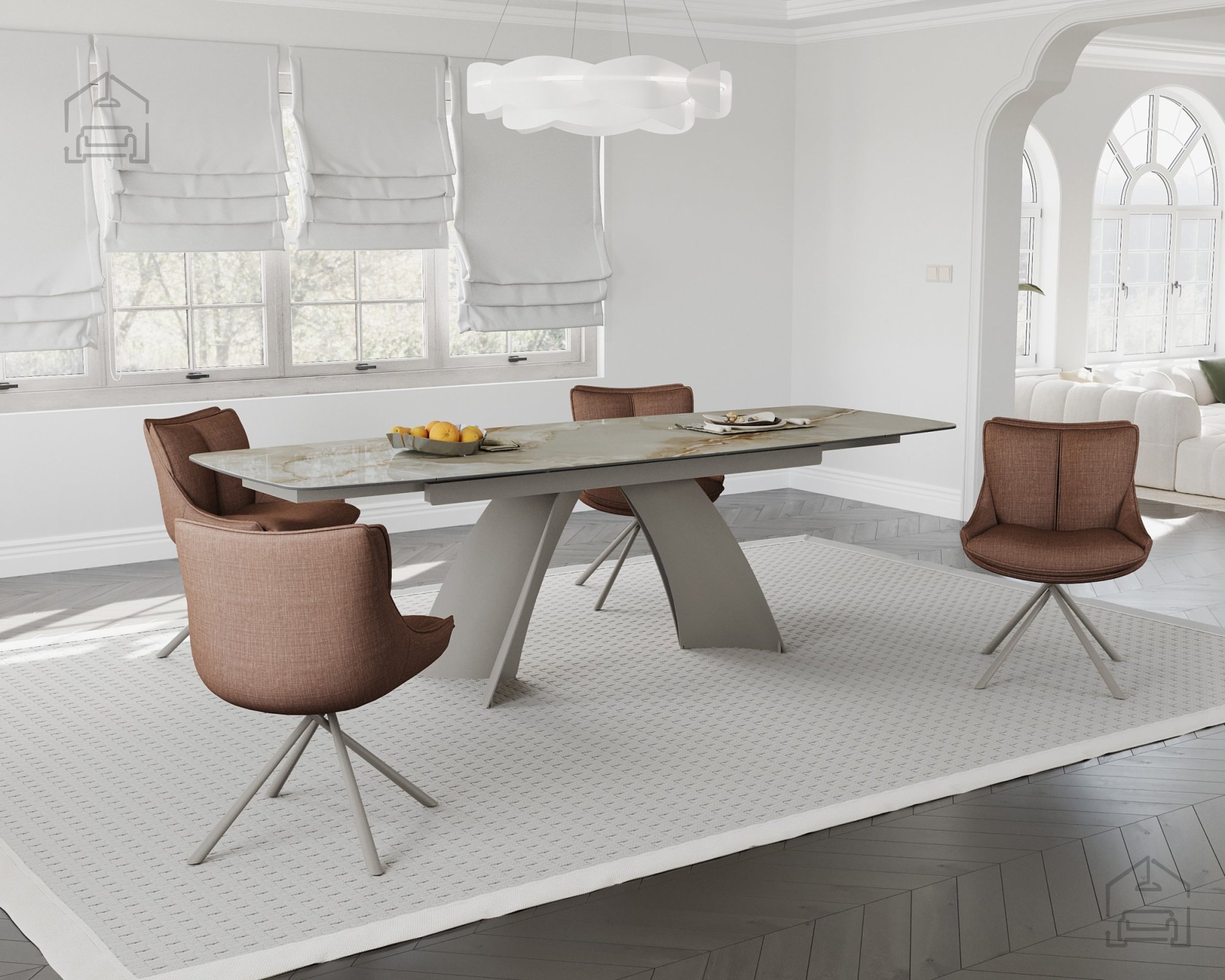 Raztegljiva miza Tokyo je zasnovana tako, da povezuje praktičnost in estetski izraz. Njena površina v videzu marmorja deluje prestižno, hkrati pa jo je enostavno čistiti – dovolj je le vlažna krpa in blago čistilo. Zaradi kombinacije keramike in stekla je odporna na praske, madeže in toplotne vplive, zato ostane videz nespremenjen tudi po letih uporabe. Miza se odlično ujema z različnimi tipi stolov, bodisi kovinskimi, lesenimi ali oblazinjenimi, ter se lepo poda v jedilnice, odprte dnevne prostore ali sodobne kuhinje.