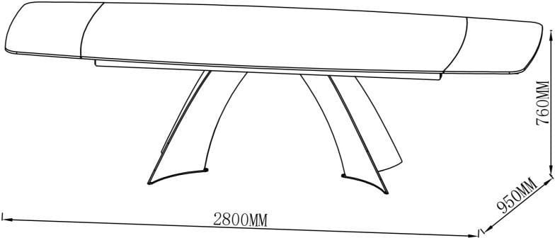 Miza ima osnovno ploščo velikosti 200x95 cm, ki se s pomočjo dveh integriranih 40 cm razširitev raztegne na 240 cm ali največ 280 cm. Mehanizem raztegovanja je vgrajen neposredno v mizno ploščo in omogoča gladko, varno ter stabilno premikanje brez potrebe po dodatnih sestavnih delih. Za uporabo je potrebno le pritrditi kovinsko podnožje, kar poenostavi montažo in omogoča hitro pripravo na uporabo. S tem sistemom se miza prilagodi številu gostov in velikosti prostora, kar jo naredi idealno za dinamična gospodinjstva ali manjše jedilnice, kjer je prostor dragocen.