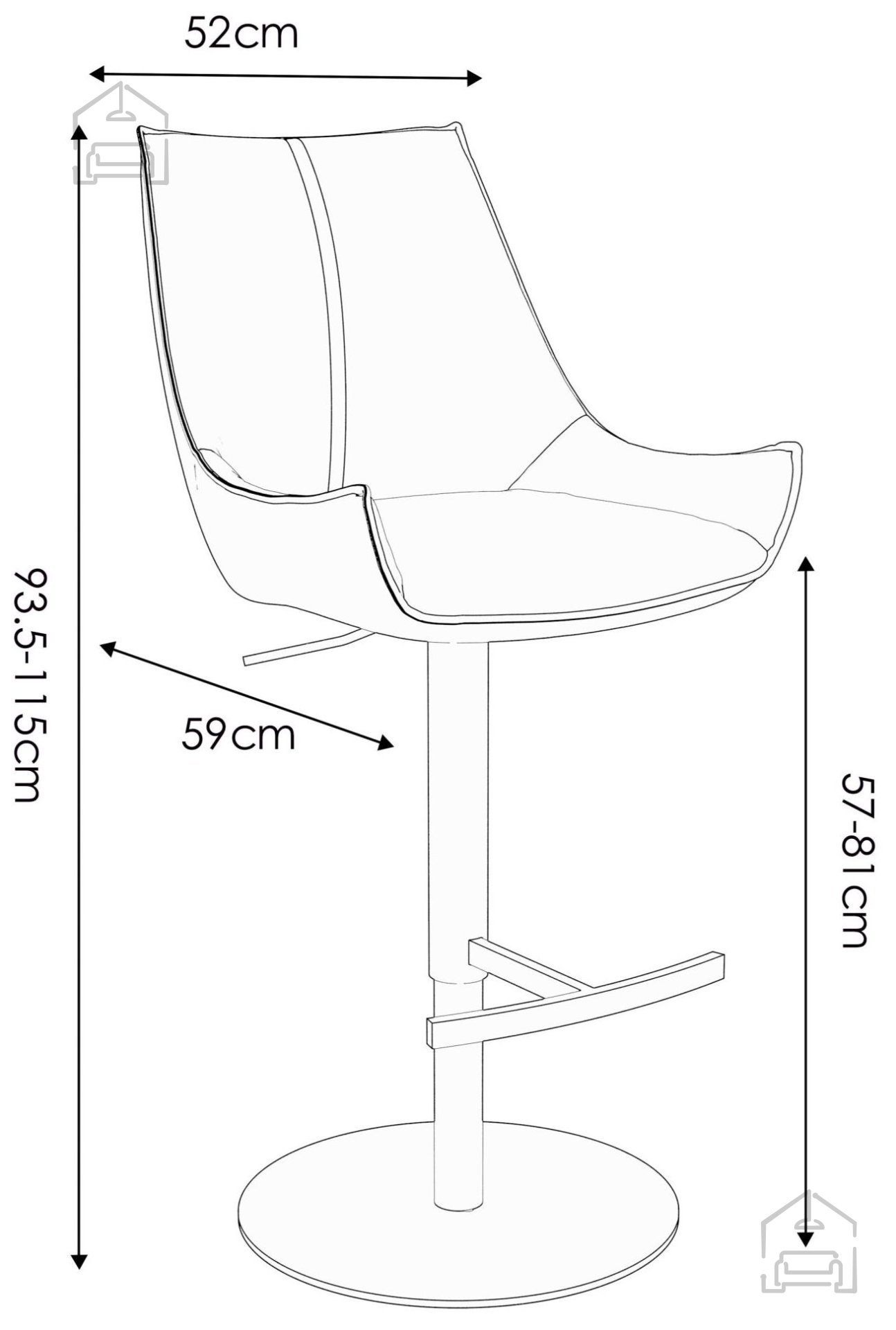 Sedišče in hrbtišče sta oblazinjena z usnjem, ki se ponaša z visoko odpornostjo na madeže ter enostavnim čiščenjem. Material ohranja svoj videz tudi ob vsakodnevni uporabi, kar zagotavlja dolgo življenjsko dobo stola. Zahvaljujoč plinskemu mehanizmu v osrednjem stebričku je višino mogoče nastaviti hitro in natančno, kar omogoča udobno sedenje tako pri nižjih kot višjih pultih. Stol se gladko vrti okoli svoje osi, zato je gibanje naravno in brez napora, kar povečuje ergonomijo pri uporabi.