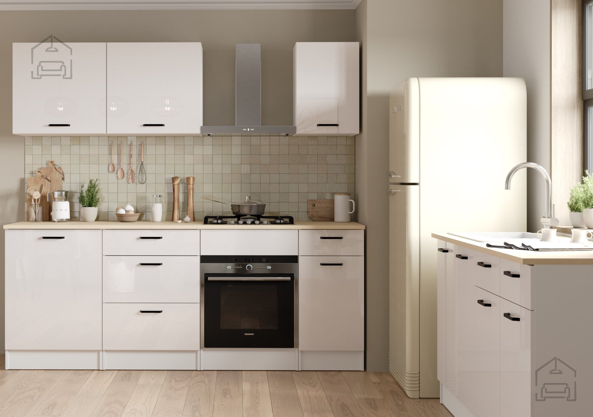 Izdelek je primeren tako za manjše kuhinje, kjer je pomembna vsak centimeter učinkovite uporabe prostora, kot tudi za večje kuhinjske kompozicije, kjer pride do izraza estetska enotnost in sijaj površin. Gladke linije, minimalistični ročaji in preprosta oblika prispevajo k brezčasnemu videzu, ki se lepo ujema z različnimi slogi notranje opreme – od skandinavskega do modernih urbanih ambientov.