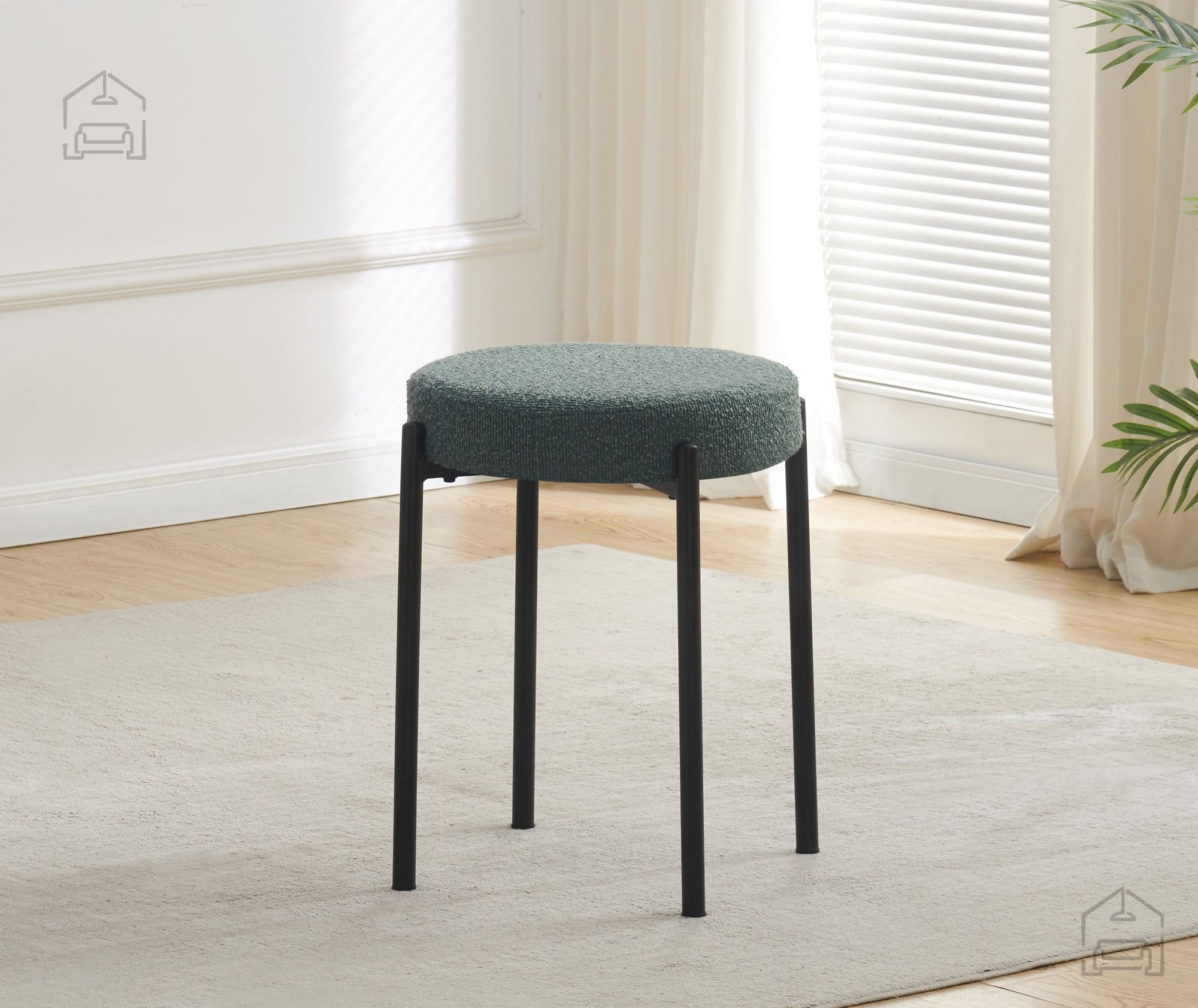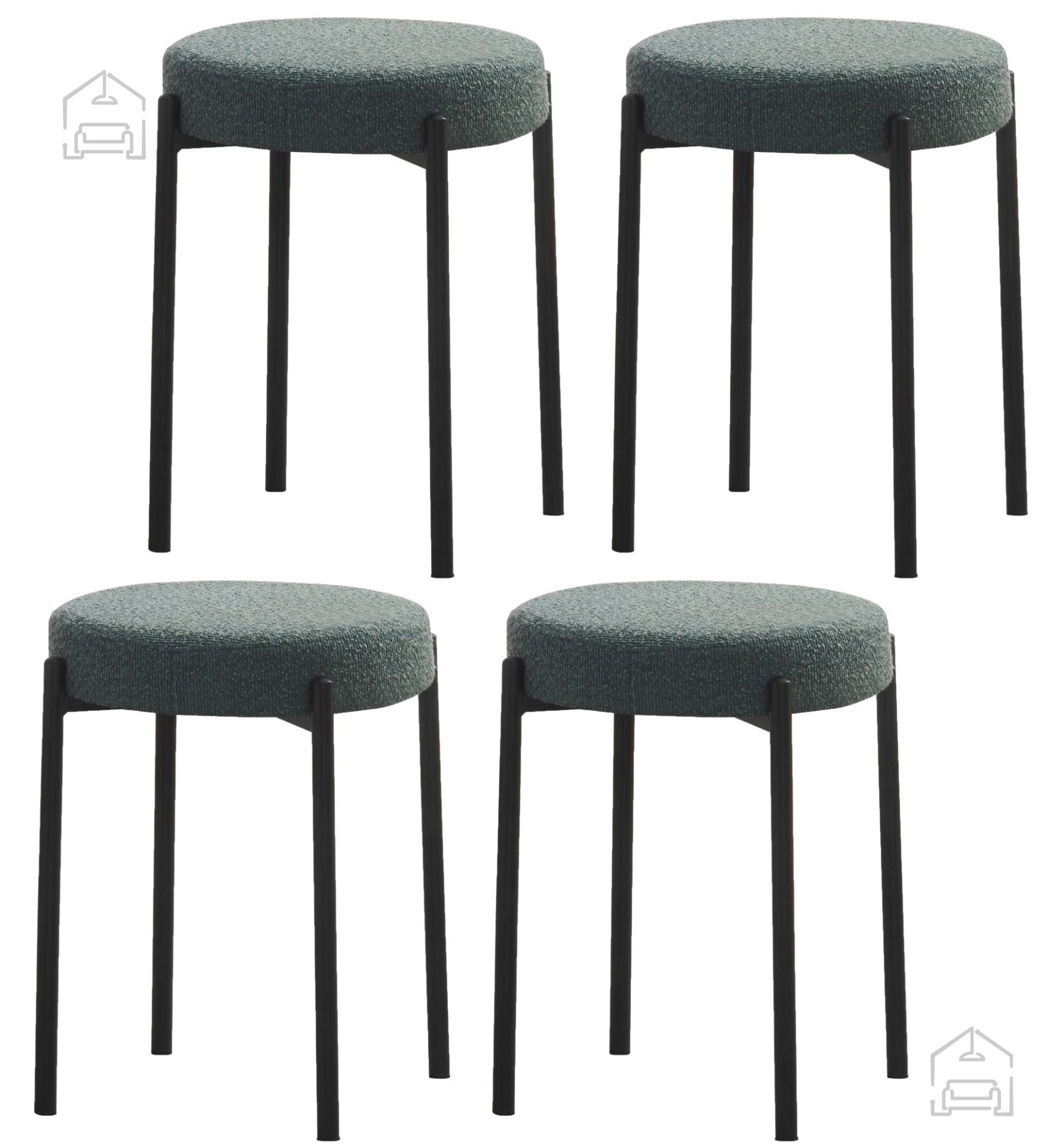 Oblika sedeža je zasnovana tako, da zagotavlja stabilno in prijetno sedenje. Tkanina omogoča prijeten stik s kožo, kovinska konstrukcija pa daje ustrezno oporo. Višina 49,5 cm je primerna za standardne jedilne mize, kar omogoča naravno držo in udobno sedenje pri obrokih ali druženju.