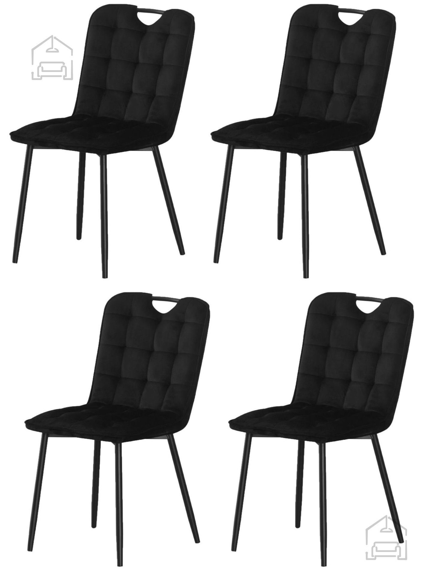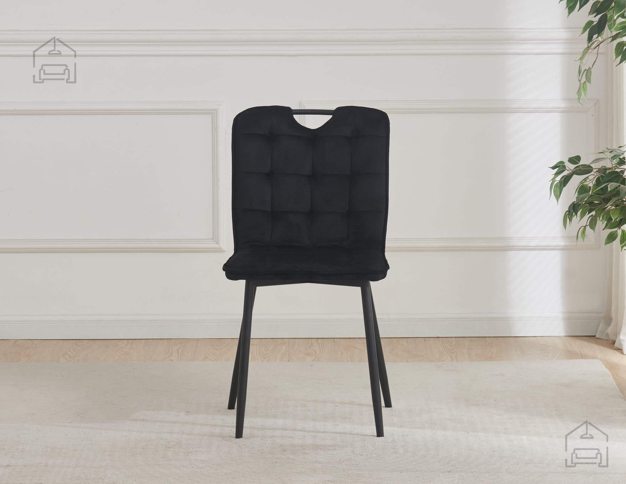 Osnova stola je kakovosten kovinski okvir, ki poskrbi za stabilno oporo in dolgo življenjsko dobo. Kovinska konstrukcija je odporna proti deformacijam in omogoča varno uporabo tudi pri največji dovoljeni obremenitvi do 130 kg. Sedež in naslon sta oblazinjena v mehko, a obstojno tkanino, ki je prijetna na dotik in enostavna za vzdrževanje. Tkanina v črnem odtenku ustvarja brezčasno podobo, ki se lepo ujema z različnimi vrstami jedilnih miz in notranjih slogov – od modernega minimalizma do klasične postavitve.
