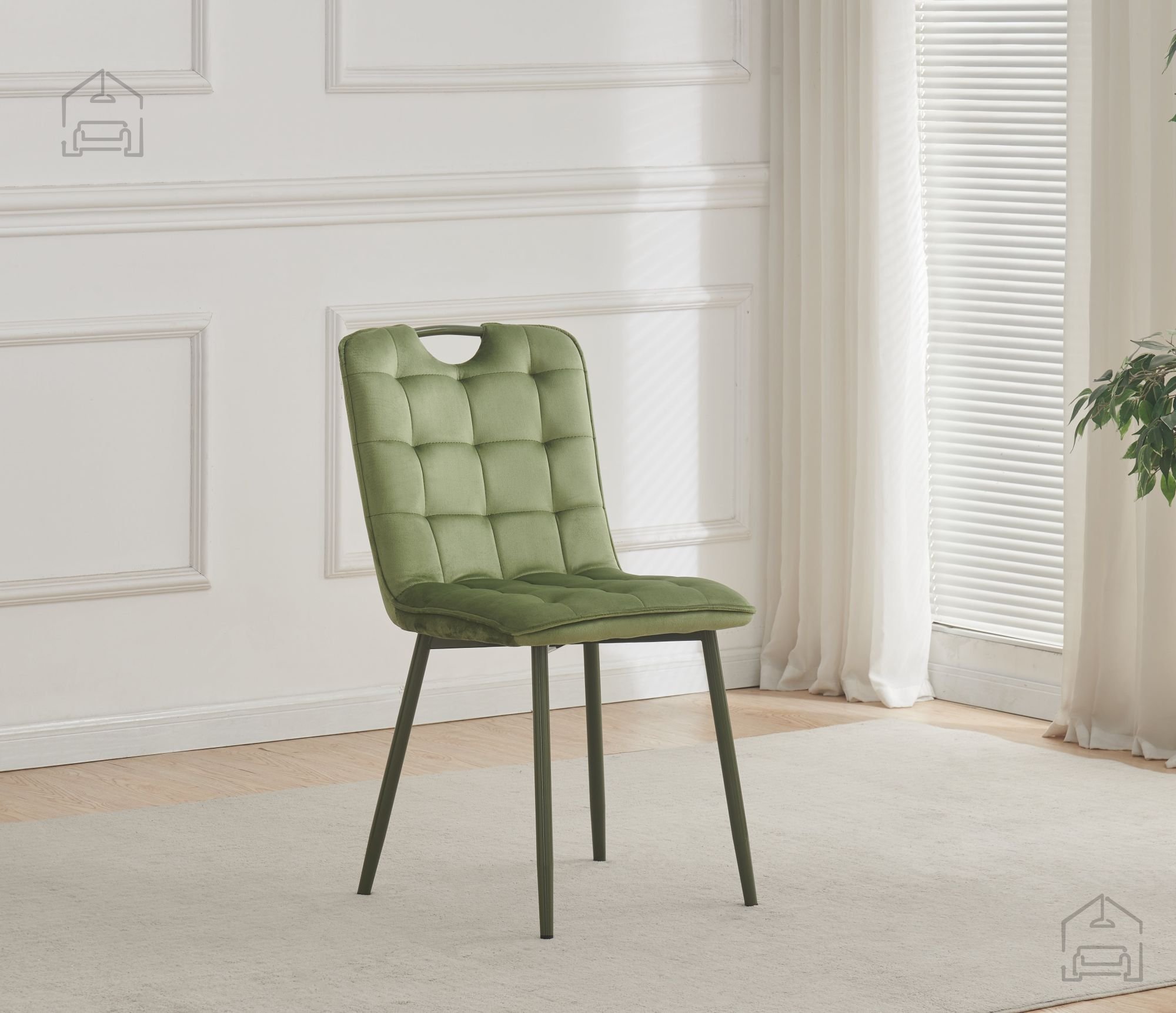 Zelena barva stola Milik prinaša svežino in eleganco v prostor. Gre za odtenek, ki se lepo ujema z naravnimi materiali, kot sta les in kamen, hkrati pa dopolnjuje sodobne minimalistične interierje. Zeleni jedilniški stol lahko v prostoru deluje kot izrazit barvni poudarek ali pa se harmonično zlije z drugimi nevtralnimi toni.