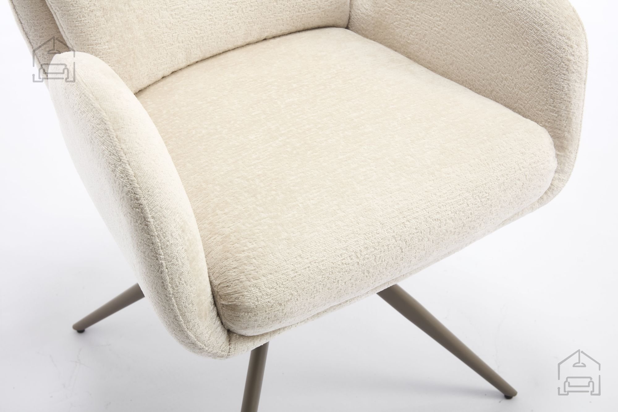 Celotno sedišče in naslon stola Taro sta oblazinjena z mehko tkanino v nežnem bež odtenku, ki prostoru doda toplino in občutek domačnosti. Rahlo zaobljeni robovi naslonjala in naslonov za roke so načrtovani tako, da nudijo naravno oporo telesu brez nepotrebne teže. Oblazinjeni deli ustvarjajo občutek mehkobe, hkrati pa ohranjajo strukturo, kar zagotavlja dolgotrajno oblikovno stabilnost.