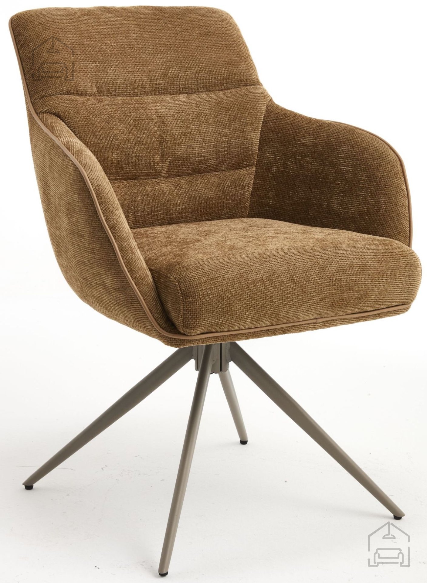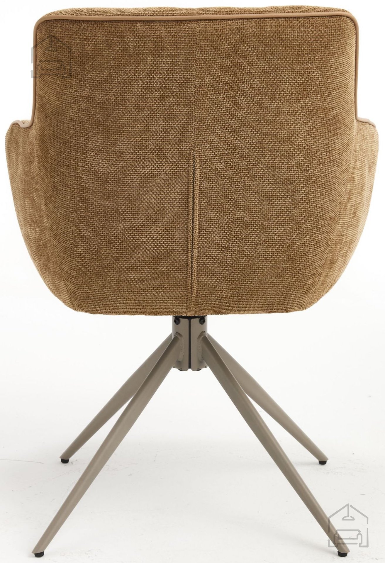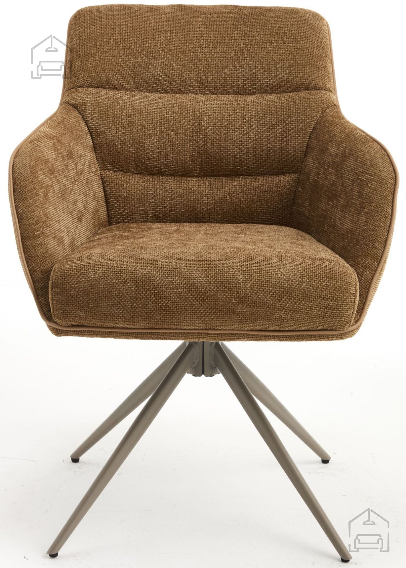 Stol Mine je v celoti oblazinjen s kakovostno tkanino rjave barve, ki se lepo ujema z naravnimi materiali, svetlim lesom ali kovinskimi poudarki v prostoru. Mehka površina tkanine omogoča prijeten občutek ob dotiku in zagotavlja udobno sedenje tudi ob daljših obrokih. Kovinski okvir in podnožje nudita trdnost, ki je ključna za stabilnost in varnost pri uporabi, hkrati pa prispevata k sodobnemu videzu stola.