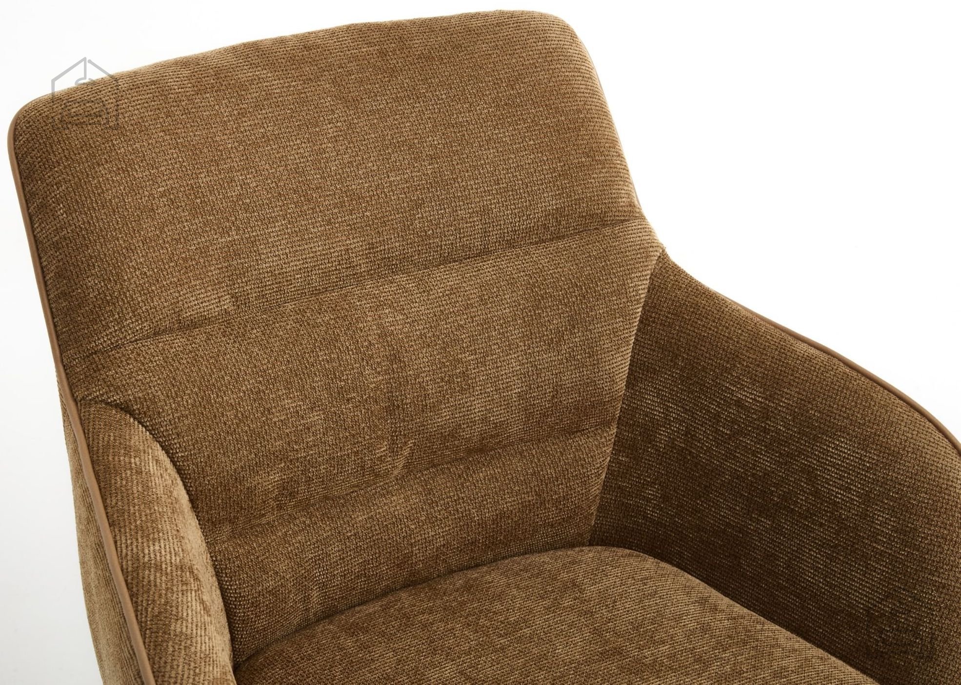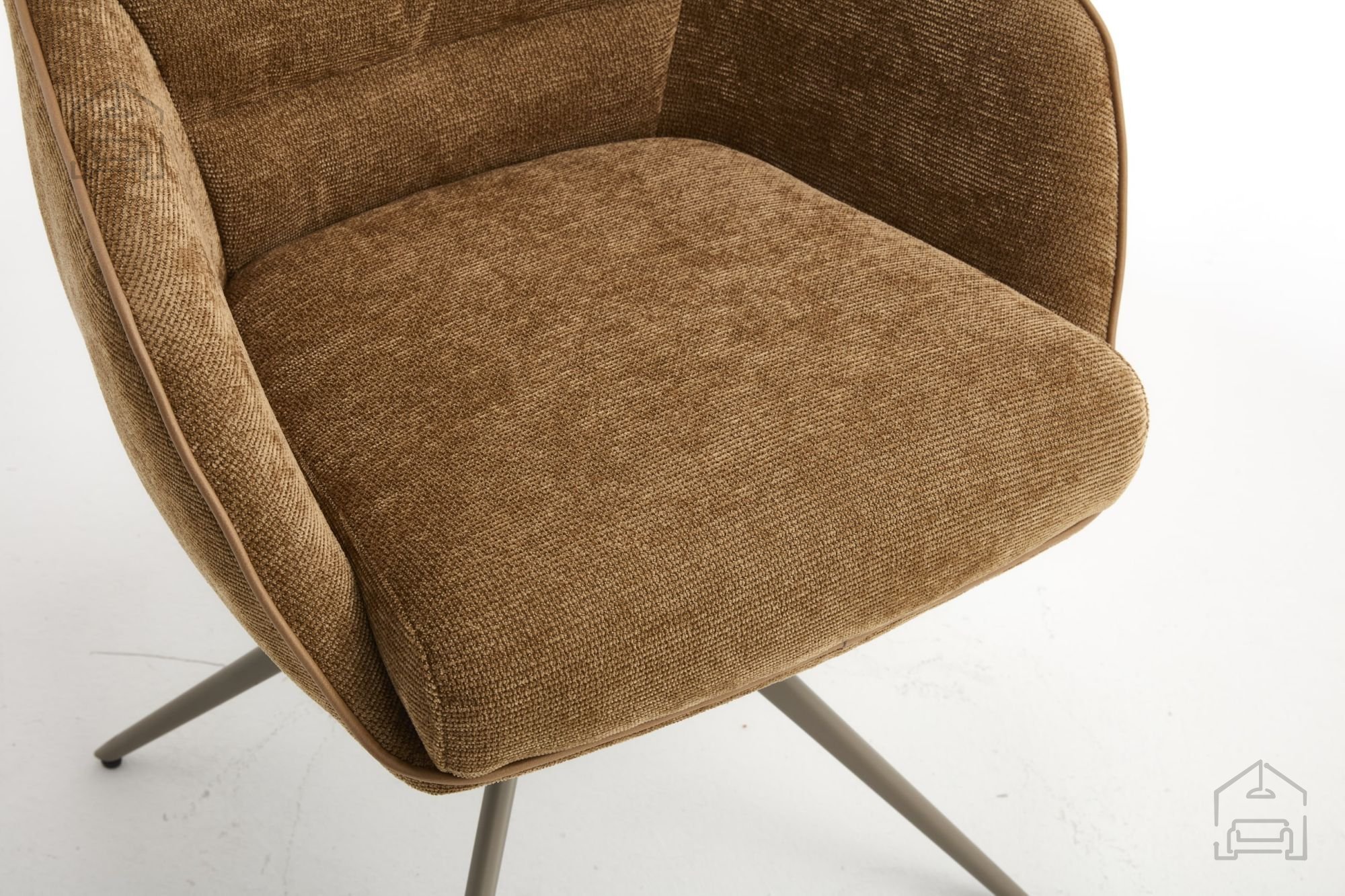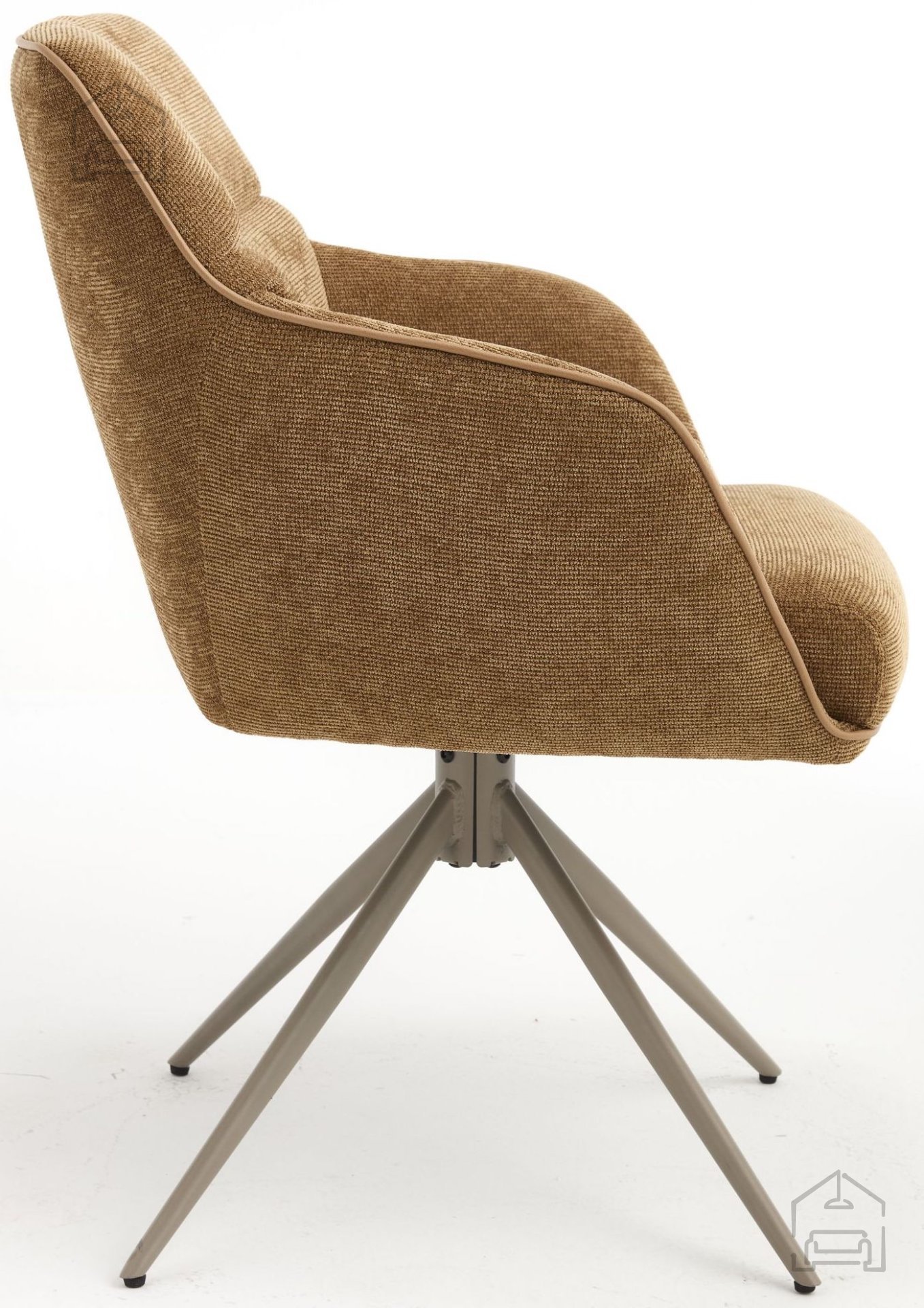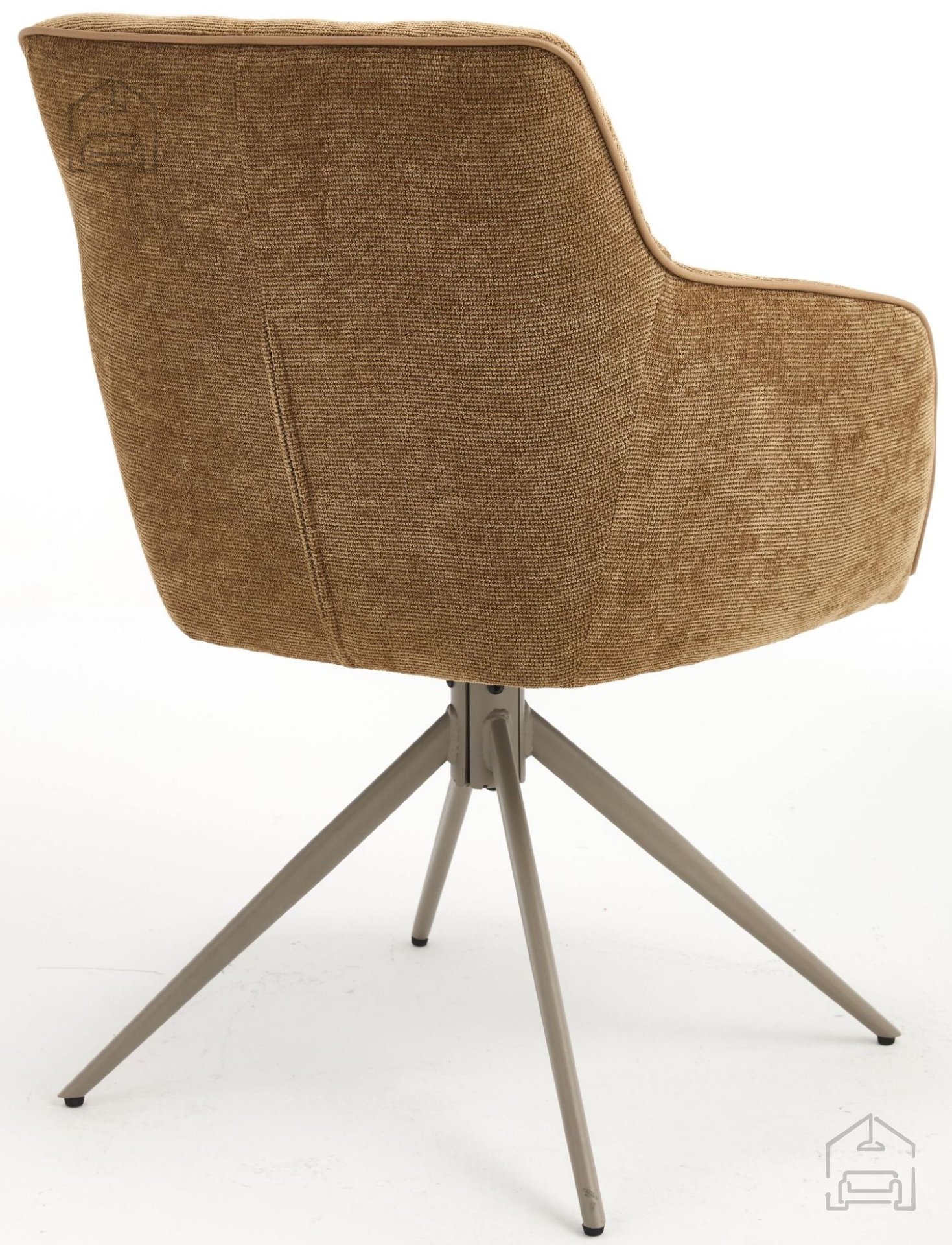 Stol Mine je v celoti oblazinjen s kakovostno tkanino rjave barve, ki se lepo ujema z naravnimi materiali, svetlim lesom ali kovinskimi poudarki v prostoru. Mehka površina tkanine omogoča prijeten občutek ob dotiku in zagotavlja udobno sedenje tudi ob daljših obrokih. Kovinski okvir in podnožje nudita trdnost, ki je ključna za stabilnost in varnost pri uporabi, hkrati pa prispevata k sodobnemu videzu stola.