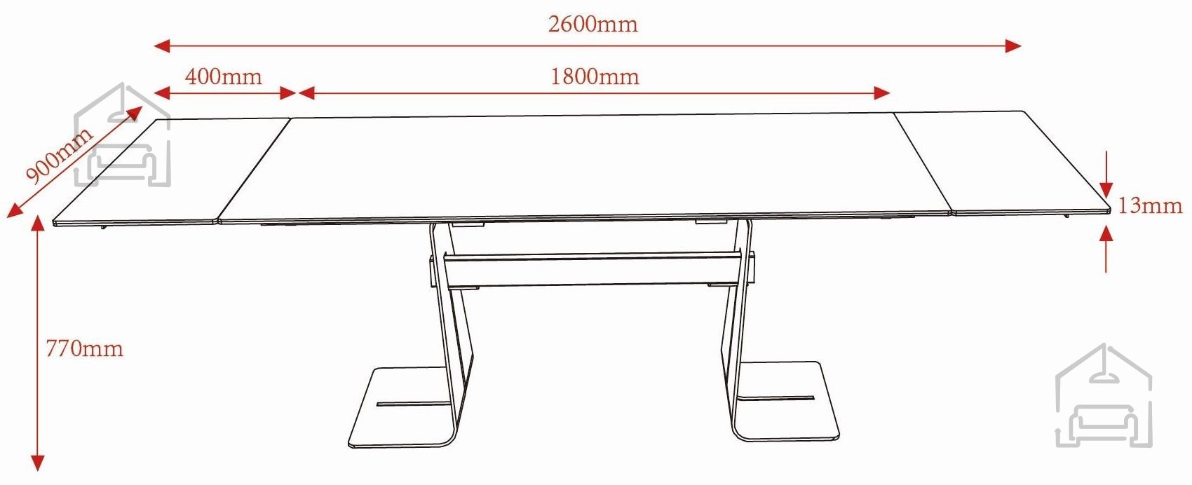 Ključna funkcionalnost mize Nimis je njen raztegljivi mehanizem. Osnovna dolžina 180 cm se lahko s pomočjo dveh podaljškov, dolgih po 40 cm, hitro poveča na 220 cm ali celo na 260 cm. Sistem raztegovanja je že vgrajen v mizno ploščo in omogoča enostavno uporabo brez potrebe po dodatnem orodju. Mehanizem je zasnovan tako, da ohranja stabilnost mize tudi v raztegnjenem položaju, hkrati pa omogoča gladko in tiho premikanje podaljškov. Ta rešitev je idealna za vse, ki želijo prilagodljivo jedilno površino za različne priložnosti – od vsakodnevnih obrokov do družinskih praznovanj ali srečanj s prijatelji.