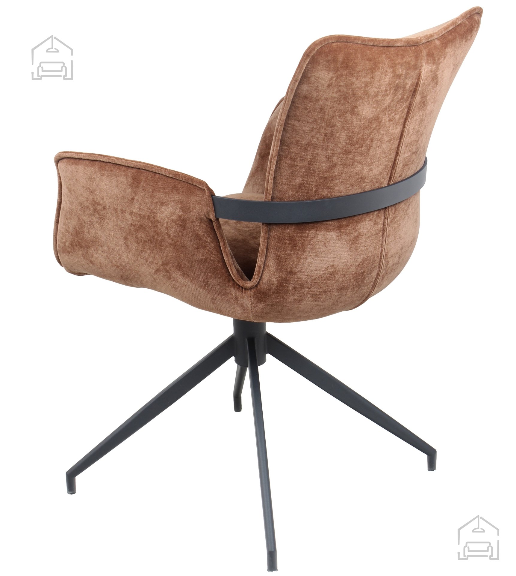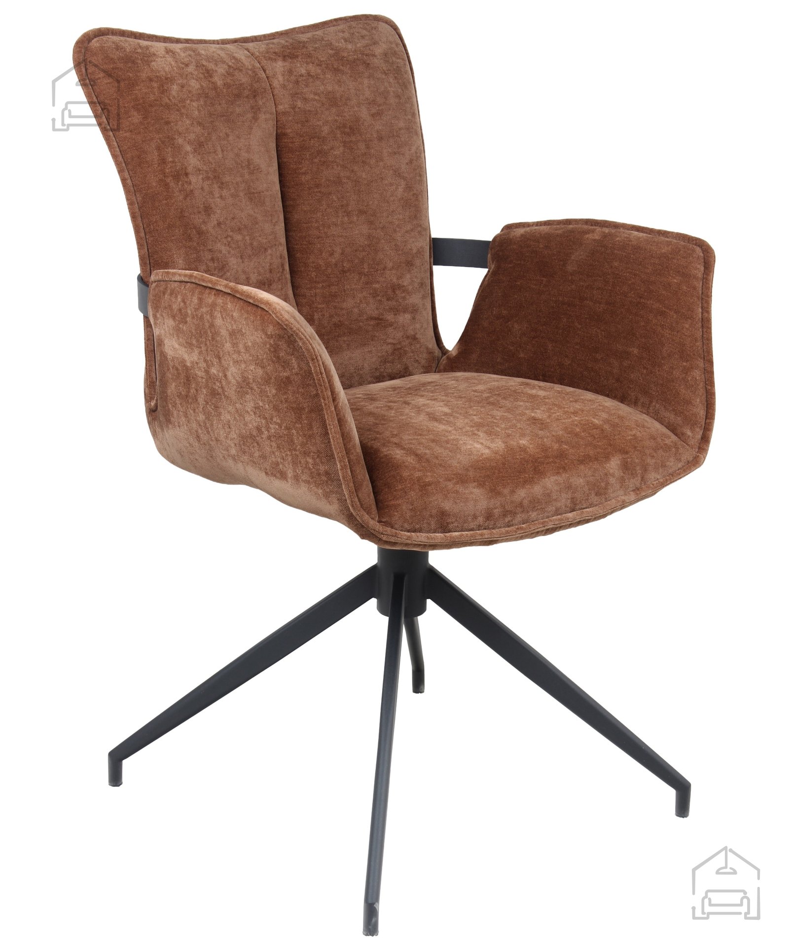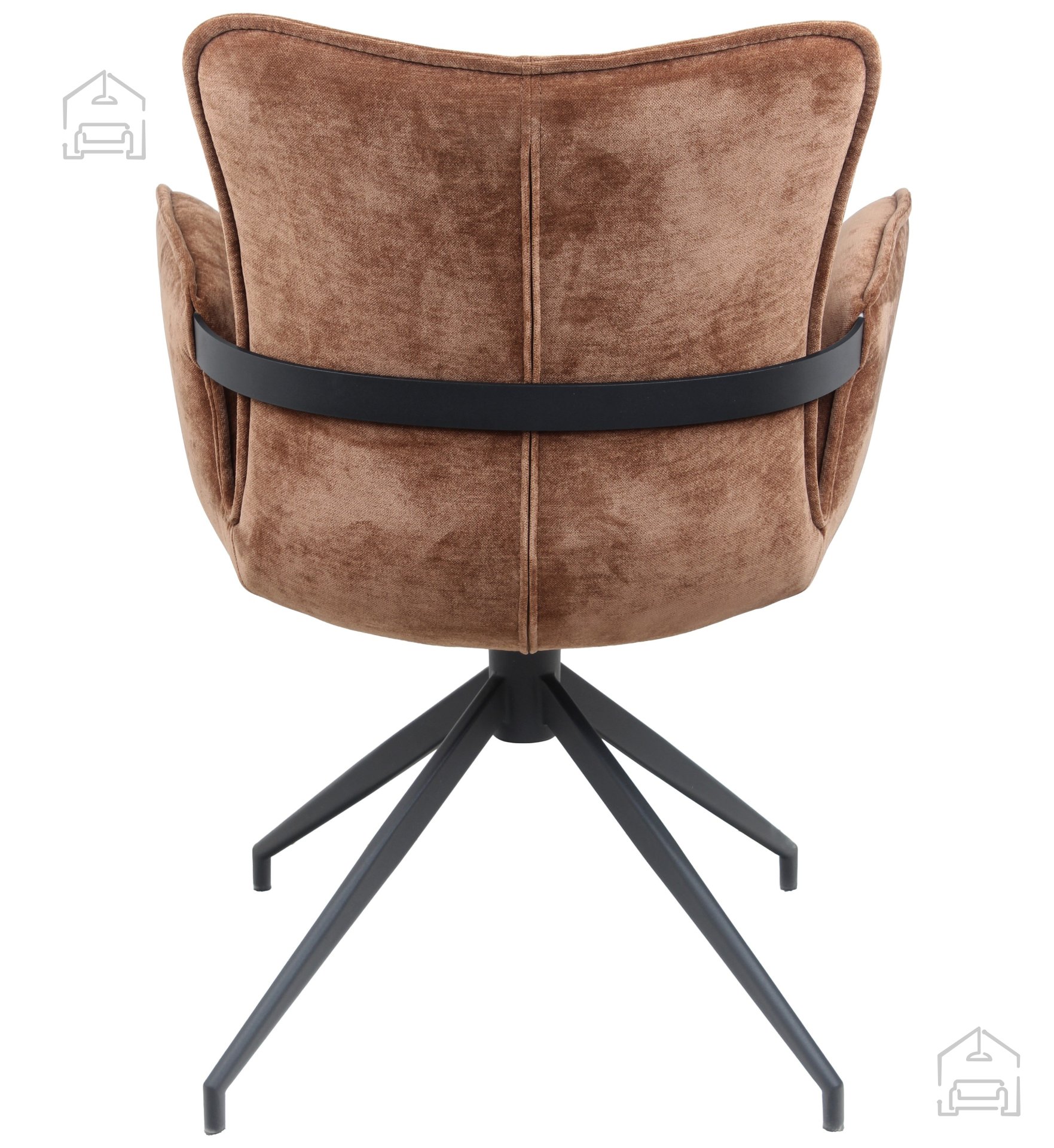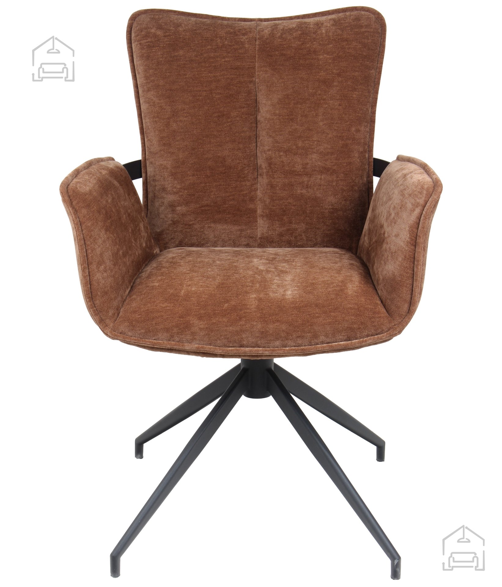 Sedež in naslonjalo sta debelo oblazinjena s kakovostno tkanino, ki je prijetna na dotik in enostavna za vzdrževanje. Material je izbran tako, da nudi idealno ravnovesje med mehkobo in podporo, zato stol ostaja udoben tudi po več urah sedenja. Tkanina je na voljo v več barvnih različicah, kar omogoča enostavno kombiniranje z različnimi slogi notranje opreme – od toplih lesenih tonov do minimalističnih, industrijskih ali skandinavskih ambientov. V rjavi barvi izžareva toplino in domačnost, hkrati pa se lepo ujema s kovinskim podnožjem.