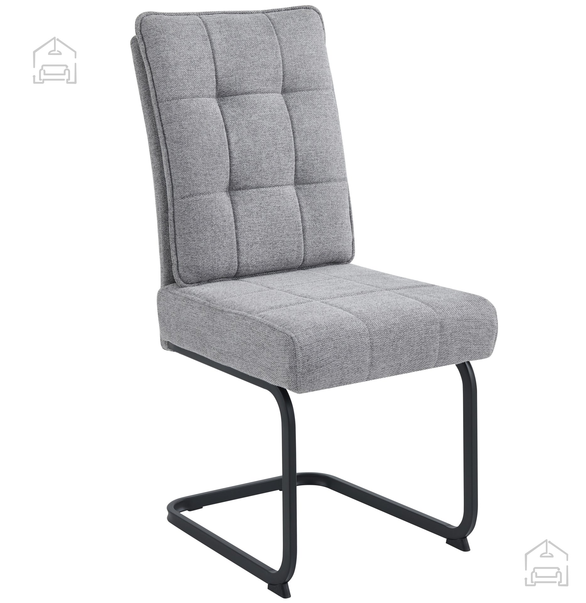 Žepkasto vzmetenje in svetlo siva tkanina: jedilniški stol Lerno – ModernoHome.