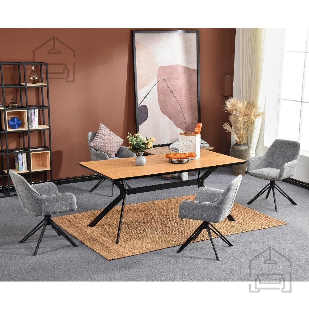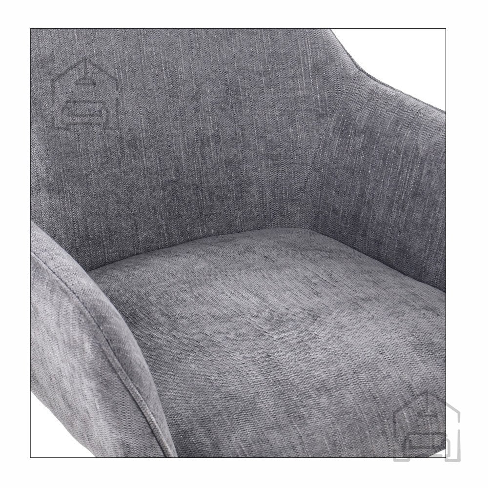 Ne glede na to, ali ga uporabite kot del večjega jedilnega kompleta ali samostojen poudarek v notranjosti, ta vrtljiv stol s svojo kombinacijo tkanine in kovine prinaša sodobno estetiko in udobje. Njegove čiste linije, uravnotežene mere in kakovostni materiali so zagotovilo, da bo dolgo ostal priljubljen kos pohištva v vašem domu.