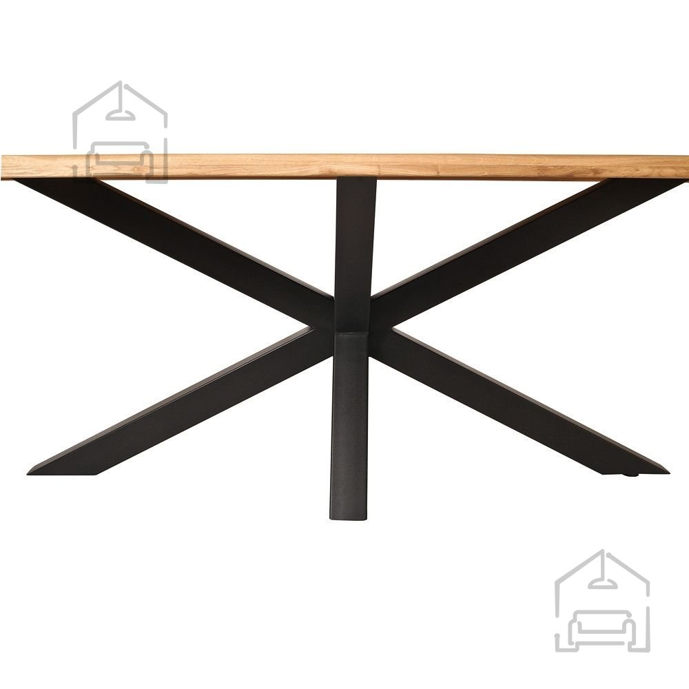 S kombinacijo masivnega hrasta in prašno lakirane kovine nastane harmoničen kontrast med toplino naravnega lesa in sodobno industrijsko estetiko. To omogoča, da se celoten komplet brez težav vključi tako v moderno kot v rustikalno notranjo opremo.