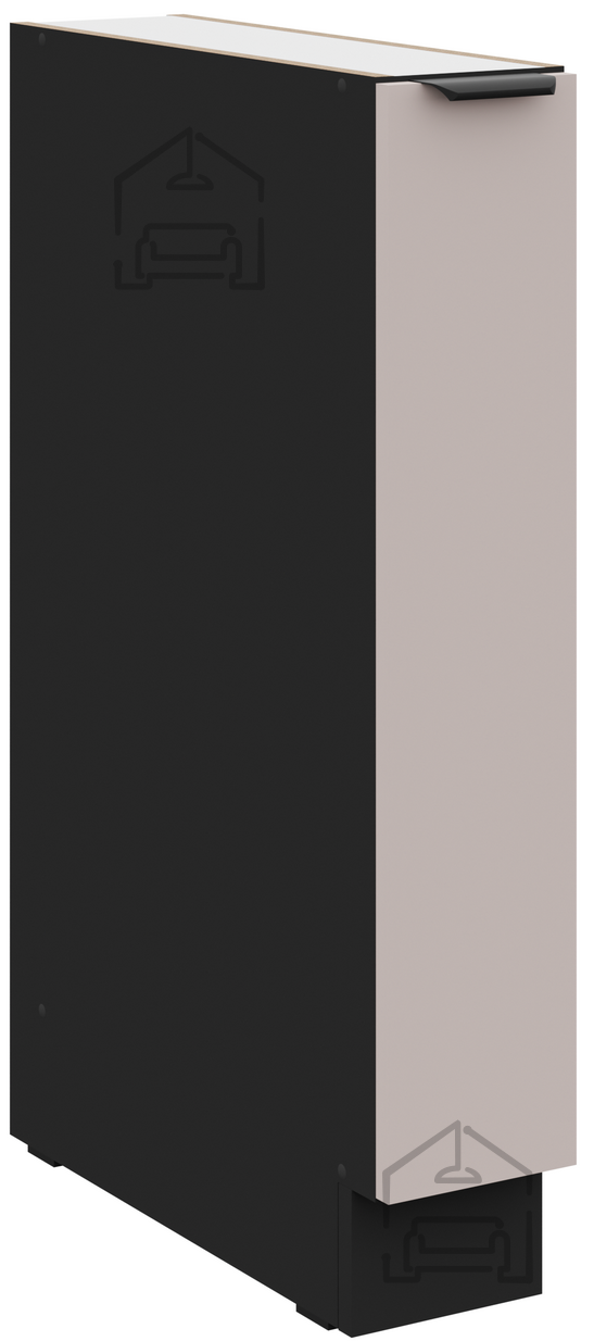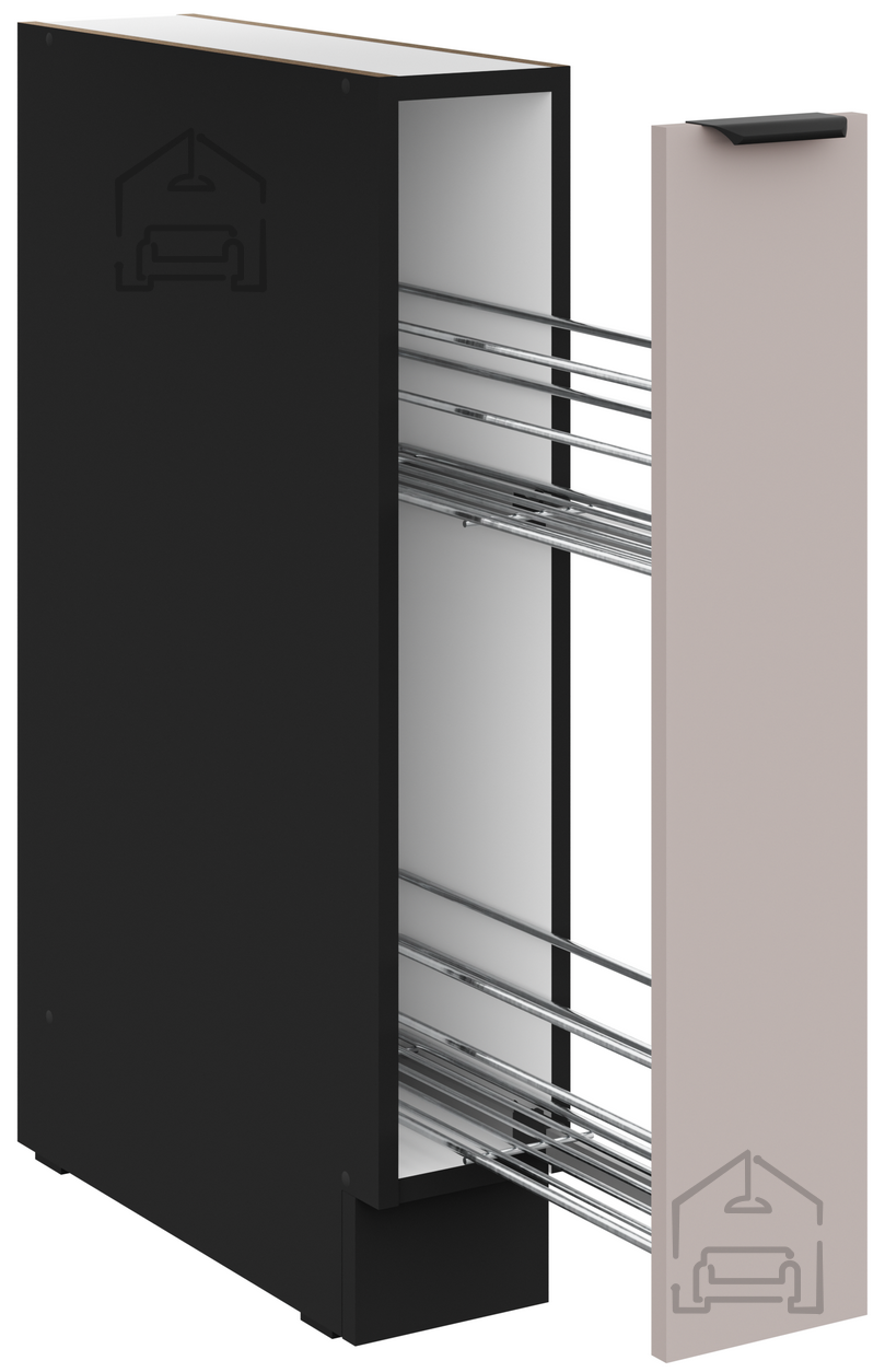 Spodnja omara Arona znamke Stolarz-Lempert je kompakten, a funkcionalen element kuhinjskega bloka, ki združuje sodobno estetiko in praktičnost. Izdelana je iz kakovostne laminirane plošče debeline 16 mm, kar zagotavlja trdnost in dolgo življenjsko dobo tudi pri vsakodnevni uporabi. Zunanja površina v barvni kombinaciji kašmir/črna prinaša eleganten kontrast, primeren za sodobne kuhinje, kjer je poudarek na prefinjenih detajlih in urejenem videzu.