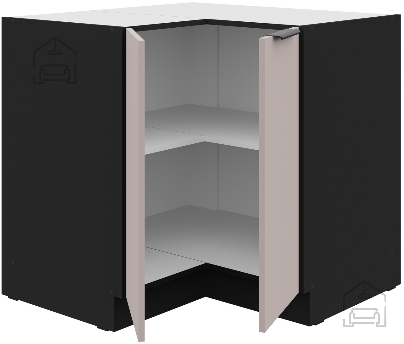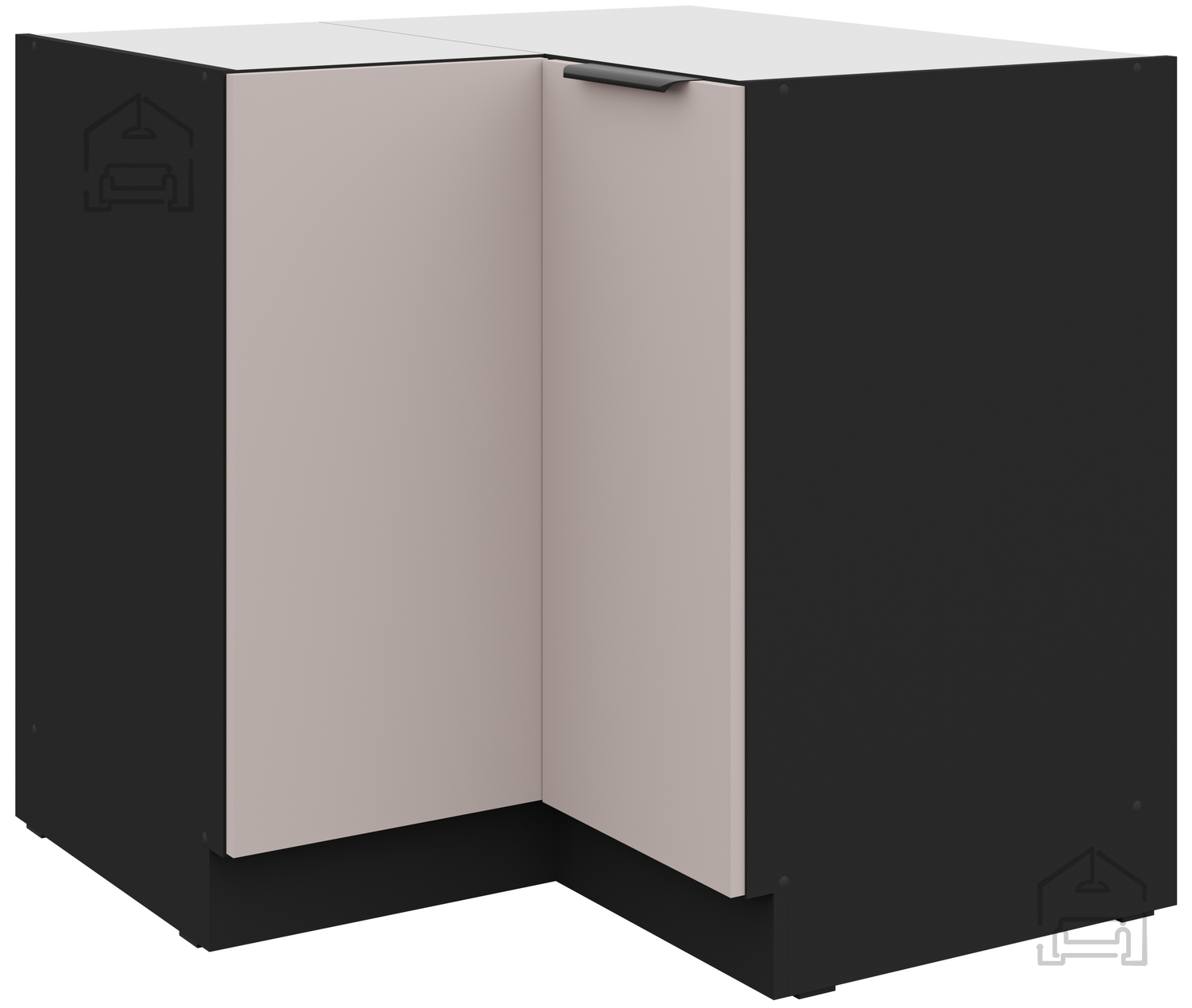 Spodnja kotna omara Arona je del premišljeno zasnovane kuhinjske linije, ki združuje sodobno estetiko, trpežne materiale in funkcionalnost za vsakodnevno uporabo. Izdelana je iz kakovostne laminirane plošče debeline 16 mm, ki zagotavlja odlično odpornost proti praskam, vlagi in obrabi. Njen prepoznaven videz v kombinaciji barv kašmir/črna ustvarja elegantno in hkrati toplo atmosfero v sodobni kuhinji. Kompaktna izvedba z merami 84,5 × 52 × 82 cm omogoča učinkovito uporabo prostora v kotnih delih kuhinje, kar je še posebej priročno v manjših stanovanjih ali pri modularnih kuhinjskih postavitvah.