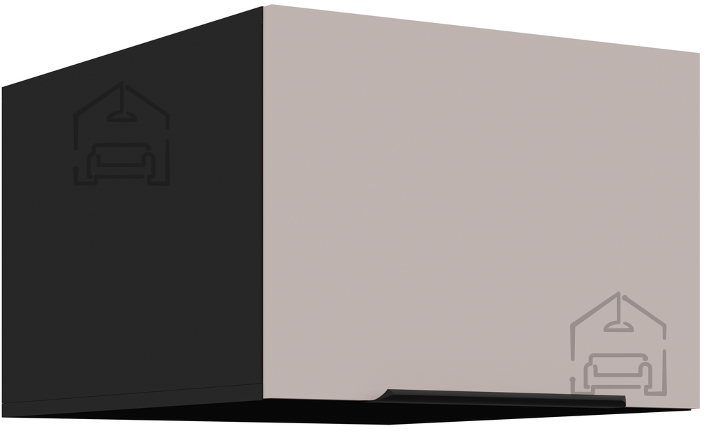 Zgornja omara Arona je del sodobne kuhinjske linije, ki jo odlikuje prefinjena kombinacija barv kašmir in črne ter premišljena funkcionalnost. Zasnovana je za uporabnike, ki cenijo kakovostne materiale, natančno izdelavo in estetsko dovršenost. Omara s širino 50 cm, globino 31 cm in višino 57 cm je idealna rešitev za zgornje kuhinjske elemente, kjer je pomembna optimalna izraba prostora in enostavno vzdrževanje. Izdelana je iz laminirane plošče debeline 16 mm, kar zagotavlja stabilnost in dolgo življenjsko dobo. Sistem tihega zapiranja front in predalov poskrbi za udobno vsakodnevno uporabo brez neprijetnega hrupa.
