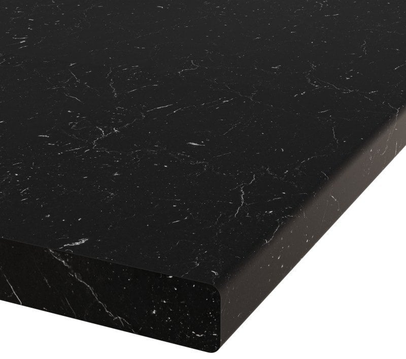 Plošča je izdelana iz trpežne iverne plošče (iverala), ki je dodatno zaščitena z laminirano prevleko. Takšna struktura omogoča visoko stabilnost in estetsko dovršenost, hkrati pa ostaja cenovno dostopna alternativa naravnemu kamnu. Robovi so obdelani s PVC furnirjem, ki preprečuje prodiranje vlage in s tem podaljšuje življenjsko dobo pulta. U-profil s posebnim slojem zaščite proti vlagi deluje kot dodatna varnostna pregrada, kar je še posebej pomembno pri vsakodnevnem stiku z vodo in paro v kuhinji.