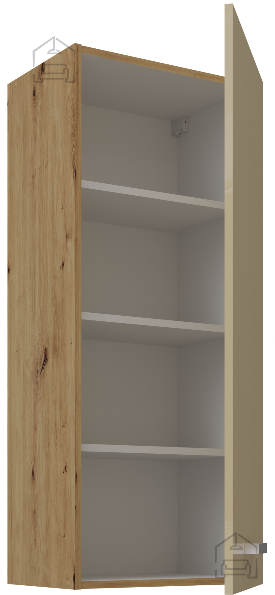 Barva cappuccino sijaj je znana po svojem premium videzu, saj daje prostoru občutek svetlosti in čistosti, medtem ko lesni vzorec hrasta artisan poskrbi za naraven in domačen vtis. Skupaj tvorita harmonijo, ki bo v vašem domu navdušila tako vas kot vaše goste.