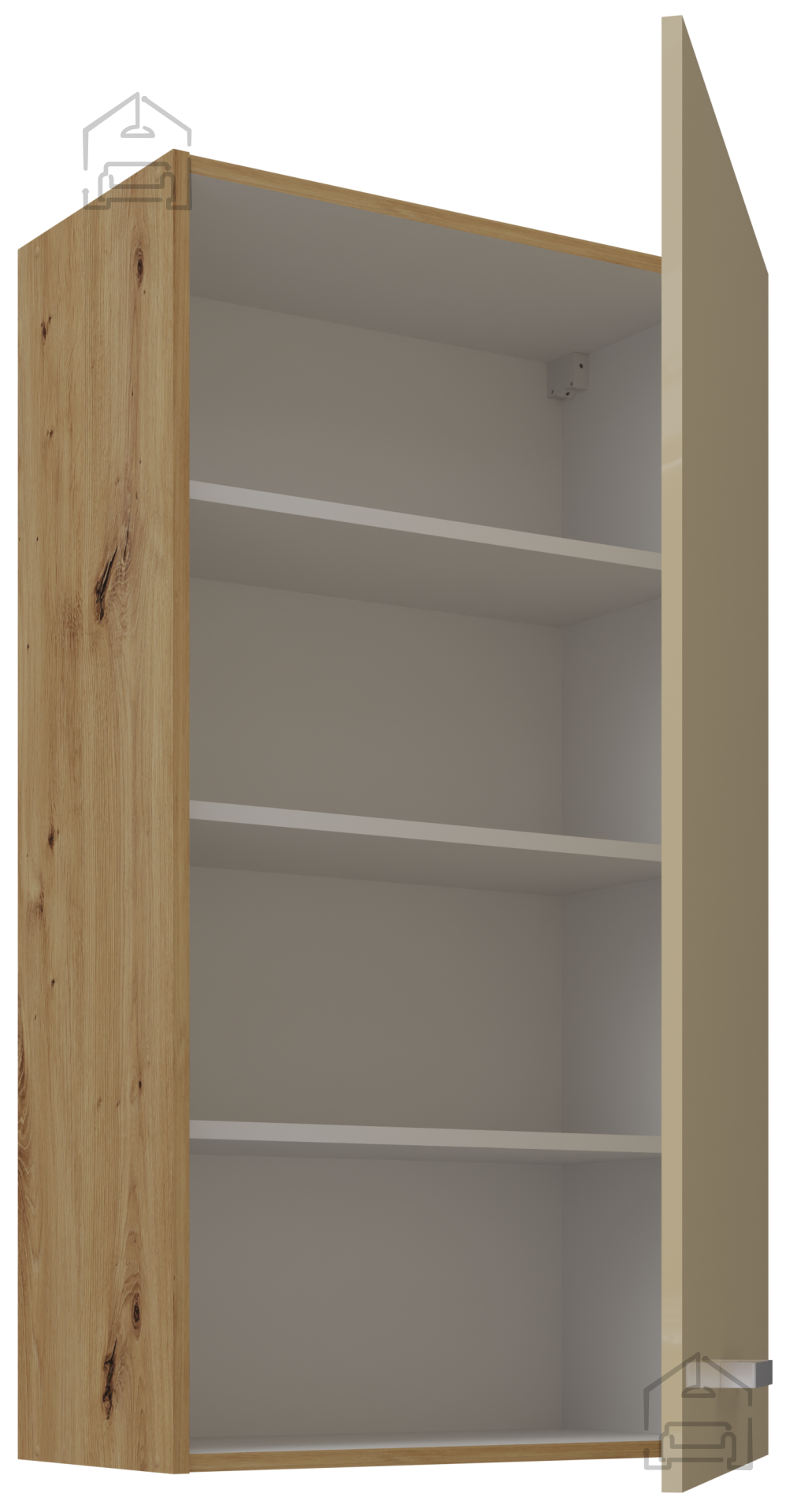 Barva cappuccino sijaj je znana po svojem premium videzu, saj daje prostoru občutek svetlosti in čistosti, medtem ko lesni vzorec hrasta artisan poskrbi za naraven in domačen vtis. Skupaj tvorita harmonijo, ki bo v vašem domu navdušila tako vas kot vaše goste.
