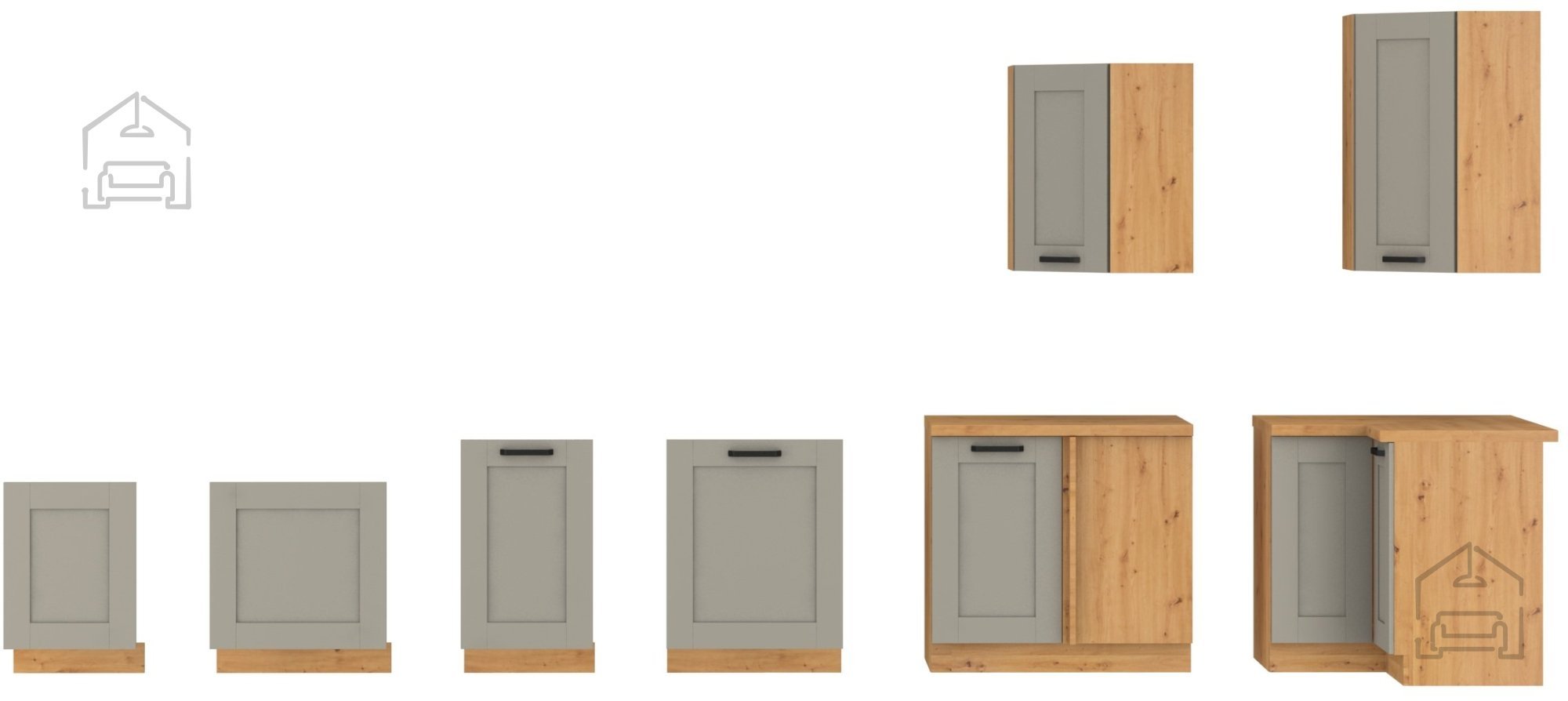Posebnost te omare je skrbno izbrana barvna kombinacija – nevtralna claygrey barva v kontrastu s toplim tonom hrasta artisan ustvarja prijetno harmonijo, ki se poda tako k modernim kot tudi klasičnim kuhinjam. Laminirana plošča, iz katere je izdelan korpus, zagotavlja dolgo življenjsko dobo, enostavno čiščenje in odpornost na vsakodnevno uporabo. Kovinski ročaj pa poskrbi za brezčasen videz in zanesljivo uporabo.