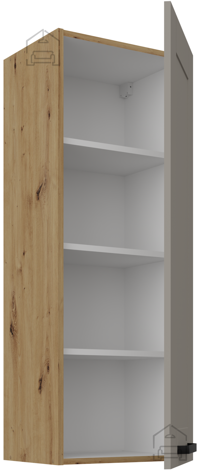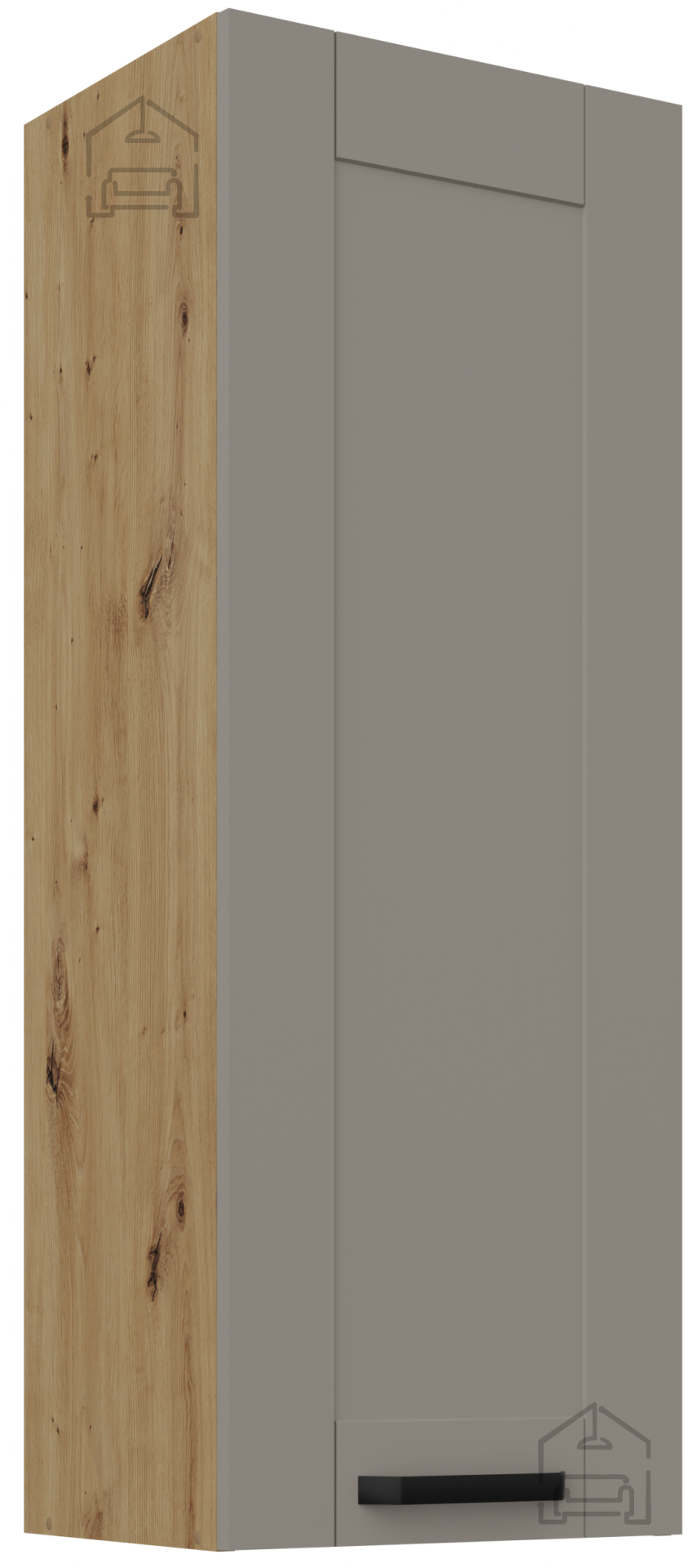 Elegantna in funkcionalna rešitev za vsako kuhinjo, ki združuje sodoben dizajn s toplino naravnih tonov. Zgornja omara Luna v kombinaciji claygrey in hrast artisan je popolna izbira za vse, ki si želijo praktičnega prostora za shranjevanje ter hkrati estetsko dovršen kos pohištva. S svojimi kompaktnimi dimenzijami 40x31x107,5 cm se brez težav prilega tudi manjšim kuhinjam, pri tem pa ohranja dovolj prostora za vaše kuhinjske pripomočke, začimbe ali posodo.