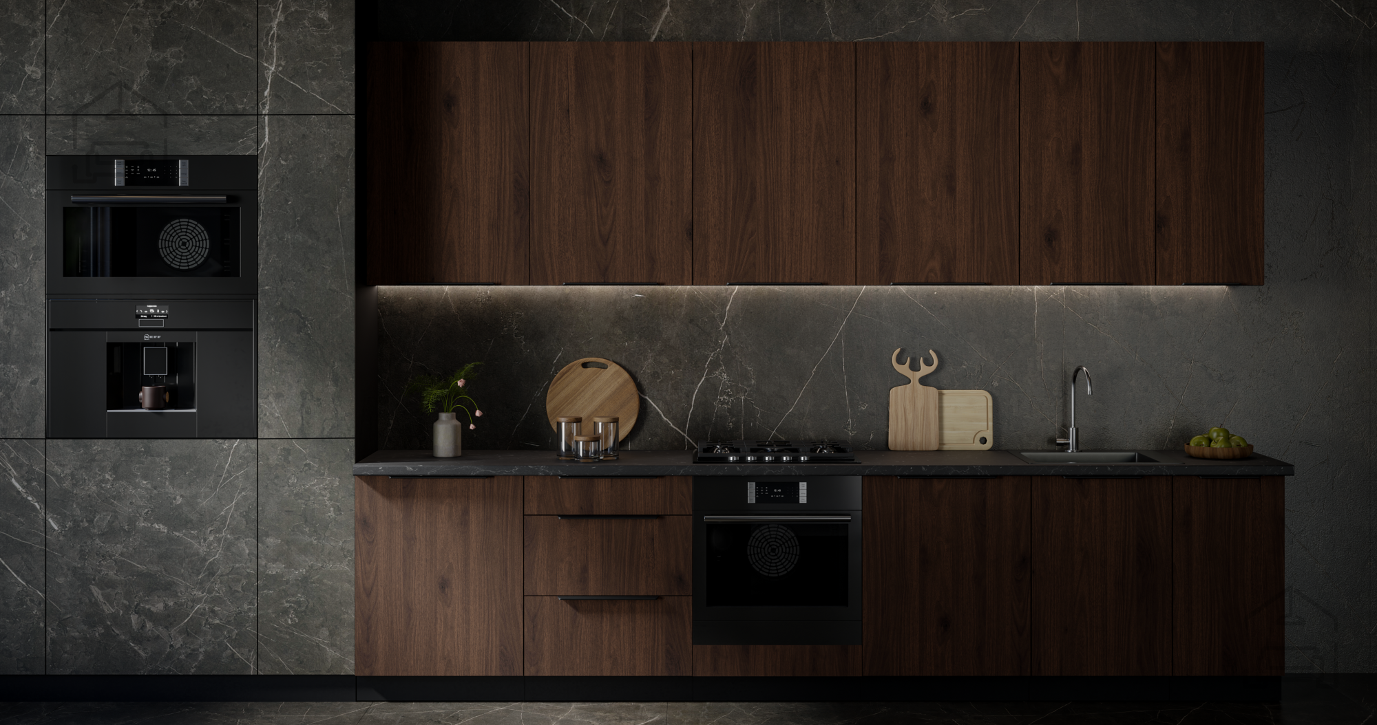 • Elegantna barvna kombinacija – orehu dodana črna barva daje prostoru globino in prefinjenost.