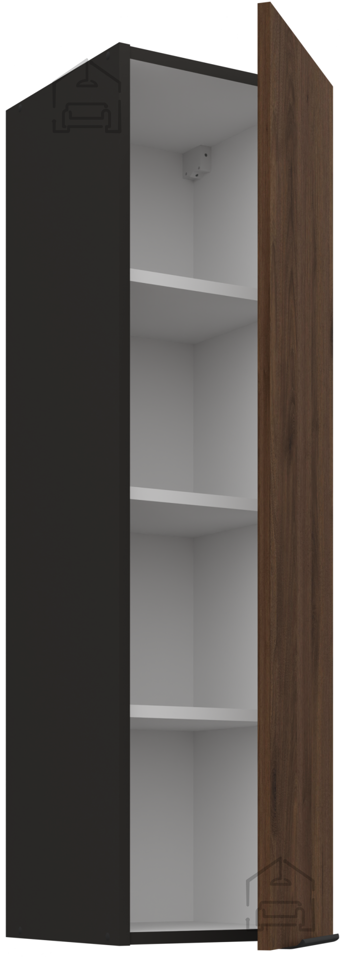 Elegantna in funkcionalna zgornja omara iz kolekcije Monza je popolna izbira za vse, ki cenite sodoben dizajn, kakovostne materiale in praktično uporabo v kuhinji ali jedilnici. S svojo prefinjeno kombinacijo toplih tonov oreha in kontrastne črne barve prinaša pridih razkošja ter popolno ravnovesje med estetiko in uporabnostjo. Njena minimalistična zasnova omogoča enostavno vključitev v različne notranje stile – od modernih do klasičnih kuhinjskih prostorov.