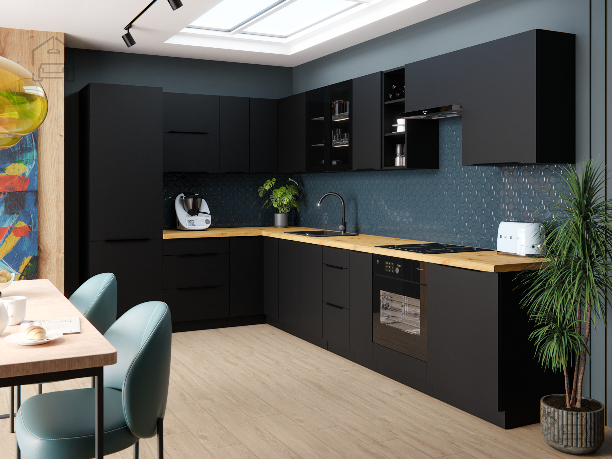 Ne glede na to, ali prenavljate celotno kuhinjo ali zgolj dodajate nove elemente, bo zgornja kotna omara Siena prava izbira za vse, ki cenijo kakovost, funkcionalnost in prefinjen dizajn. Njena univerzalna črna barva se lepo ujema z lesnimi dekorji, svetlimi frontami ali kovinskimi dodatki, zato omogoča številne kombinacije in prilagoditve vašemu slogu.