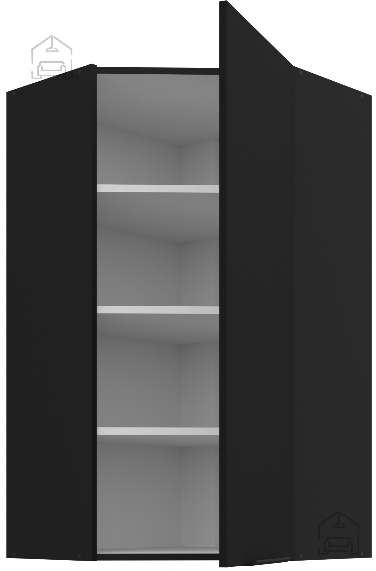 Zgornja kotna omara Siena – 60x60 GN-108 1F (45°) je popolna izbira za tiste, ki želijo izkoristiti vsak kotiček svoje kuhinje, ne da bi pri tem žrtvovali estetiko ali kakovost. S svojim sodobnim videzom v črni mat barvi prinaša občutek prefinjenosti, ki se lepo ujema tako z modernimi kot tudi klasičnimi kuhinjskimi ambienti. Omara je izdelana iz kakovostne laminirane plošče debeline 16 mm, kar zagotavlja dolgo življenjsko dobo in odlično stabilnost konstrukcije.