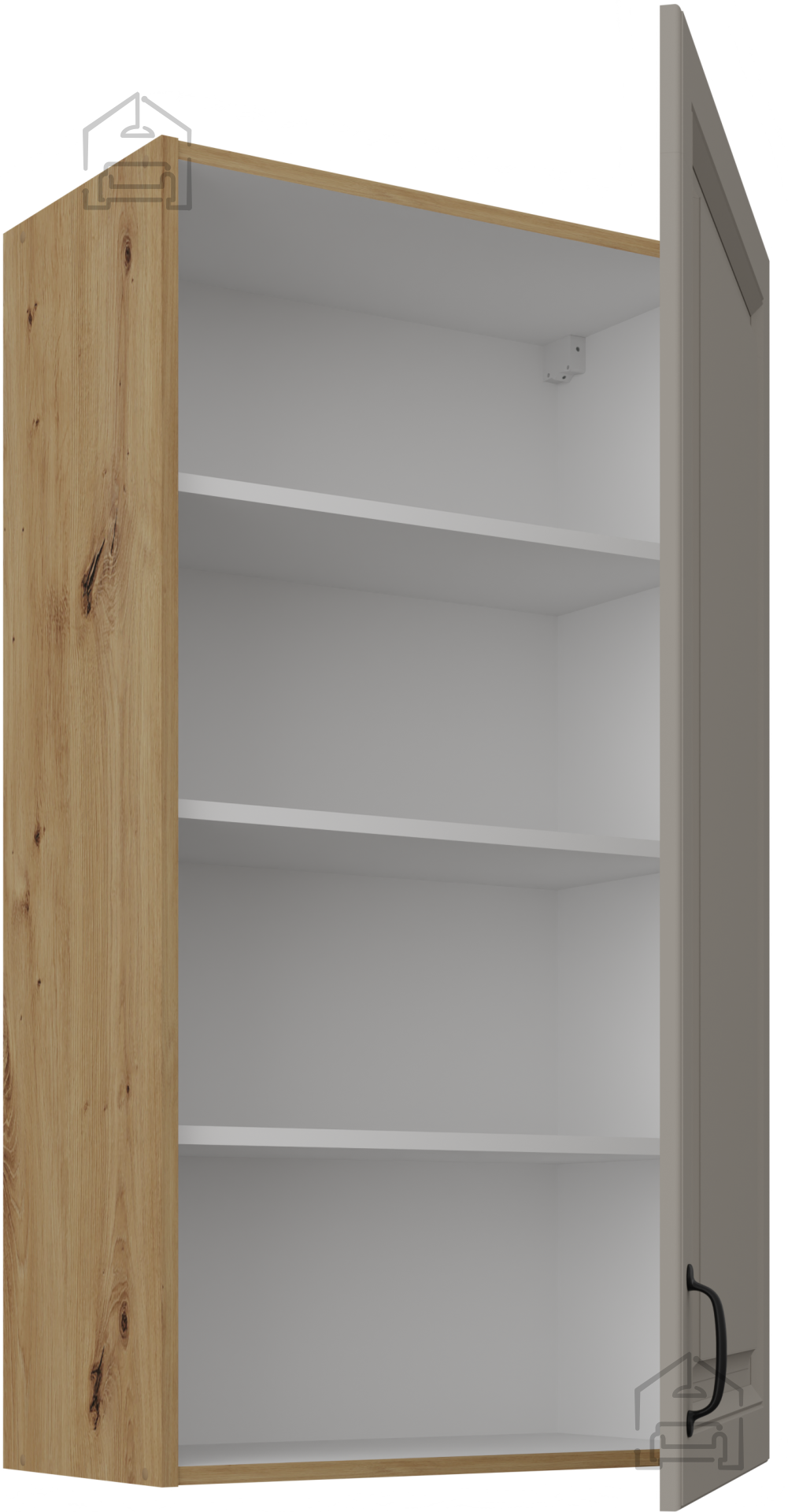 Z dimenzijami 60x31x107,5 cm je ta zgornja omarica idealna za manjše ali večje kuhinjske postavitve, saj omogoča optimalen izkoristek prostora. Izdelana je iz kakovostne laminirane plošče, ki je znana po svoji odpornosti proti vlagi, praskam in visokim temperaturam – kar je v kuhinji ključnega pomena. Površina v odtenku hrasta artisan v kombinaciji z mehko sivim tonom claygrey ustvarja topel, a sodoben videz, ki se poda tako k svetlim kot temnim kuhinjskim dekorjem.