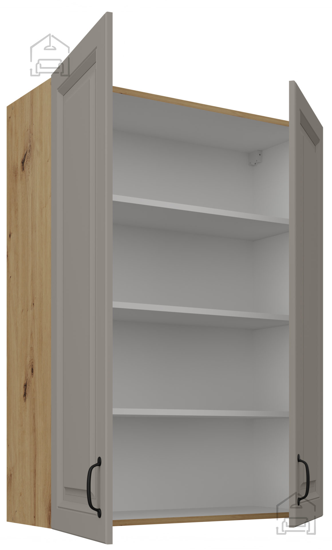Z dimenzijami 80x31x107,5 cm je ta zgornja omarica idealna za manjše ali večje kuhinjske postavitve, saj omogoča optimalen izkoristek prostora. Izdelana je iz kakovostne laminirane plošče, ki je znana po svoji odpornosti proti vlagi, praskam in visokim temperaturam – kar je v kuhinji ključnega pomena. Površina v odtenku hrasta artisan v kombinaciji z mehko sivim tonom claygrey ustvarja topel, a sodoben videz, ki se poda tako k svetlim kot temnim kuhinjskim dekorjem.