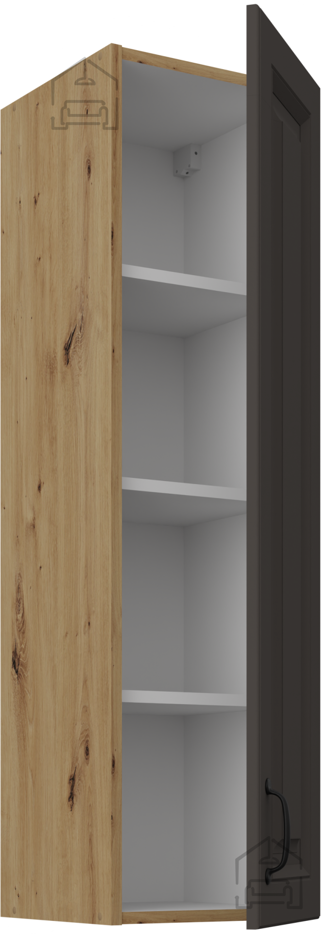 V sodobnih kuhinjah, kjer se estetika prepleta s funkcionalnostjo, je pomembno izbrati pohištvo, ki združuje lepoto, kakovost in praktično uporabnost. Prav tak vtis ustvarja zgornja omara Stilo v trendovski kombinaciji barv siva/hrast artisan. Njena minimalistična oblika, elegantne linije in naravni videz lesa se popolno zlijejo z različnimi slogi opreme – od skandinavske preprostosti do klasične topline domače kuhinje. Narejena je iz visokokakovostne laminirane plošče, ki zagotavlja dolgo življenjsko dobo in odpornost na vsakodnevne obremenitve, kar jo dela idealno izbiro za vsako sodobno gospodinjstvo.