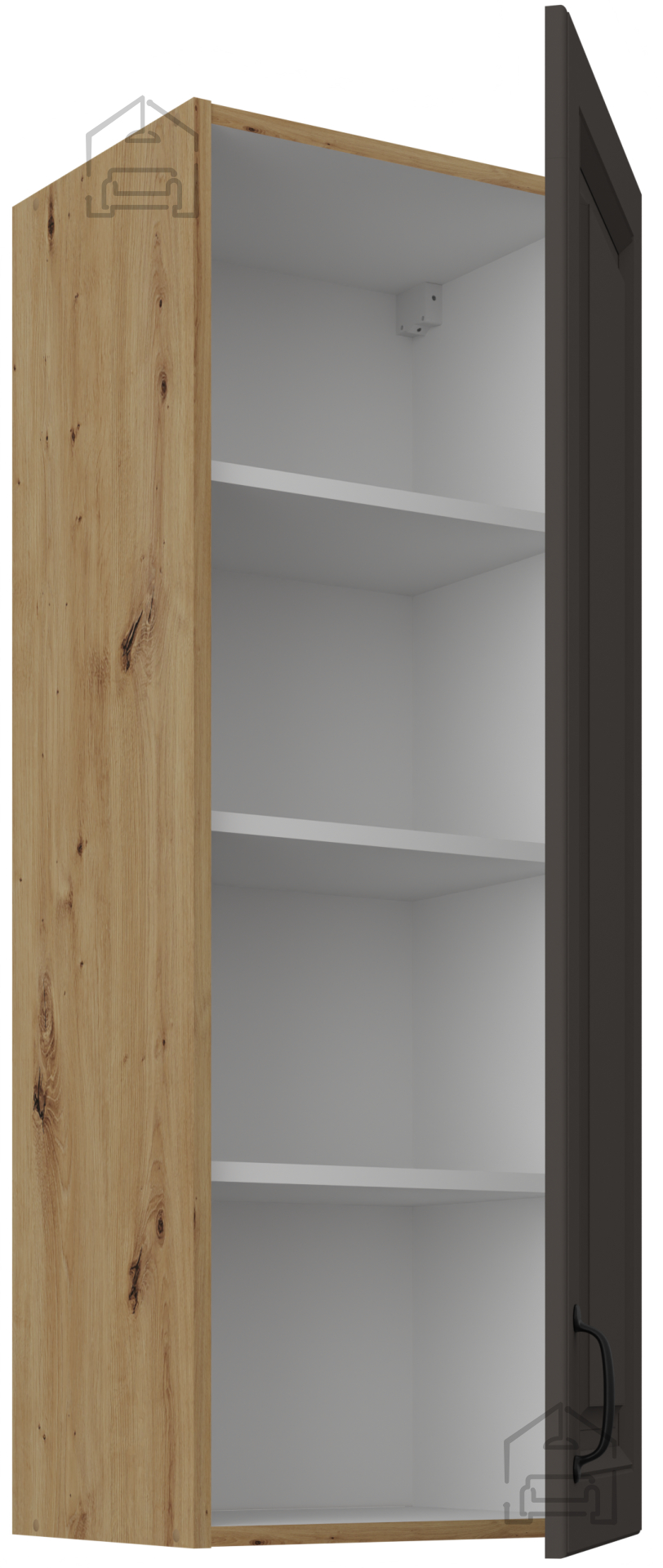 V sodobnih kuhinjah, kjer se estetika prepleta s funkcionalnostjo, je pomembno izbrati pohištvo, ki združuje lepoto, kakovost in praktično uporabnost. Prav tak vtis ustvarja zgornja omara Stilo v trendovski kombinaciji barv siva/hrast artisan. Njena minimalistična oblika, elegantne linije in naravni videz lesa se popolno zlijejo z različnimi slogi opreme – od skandinavske preprostosti do klasične topline domače kuhinje. Narejena je iz visokokakovostne laminirane plošče, ki zagotavlja dolgo življenjsko dobo in odpornost na vsakodnevne obremenitve, kar jo dela idealno izbiro za vsako sodobno gospodinjstvo.